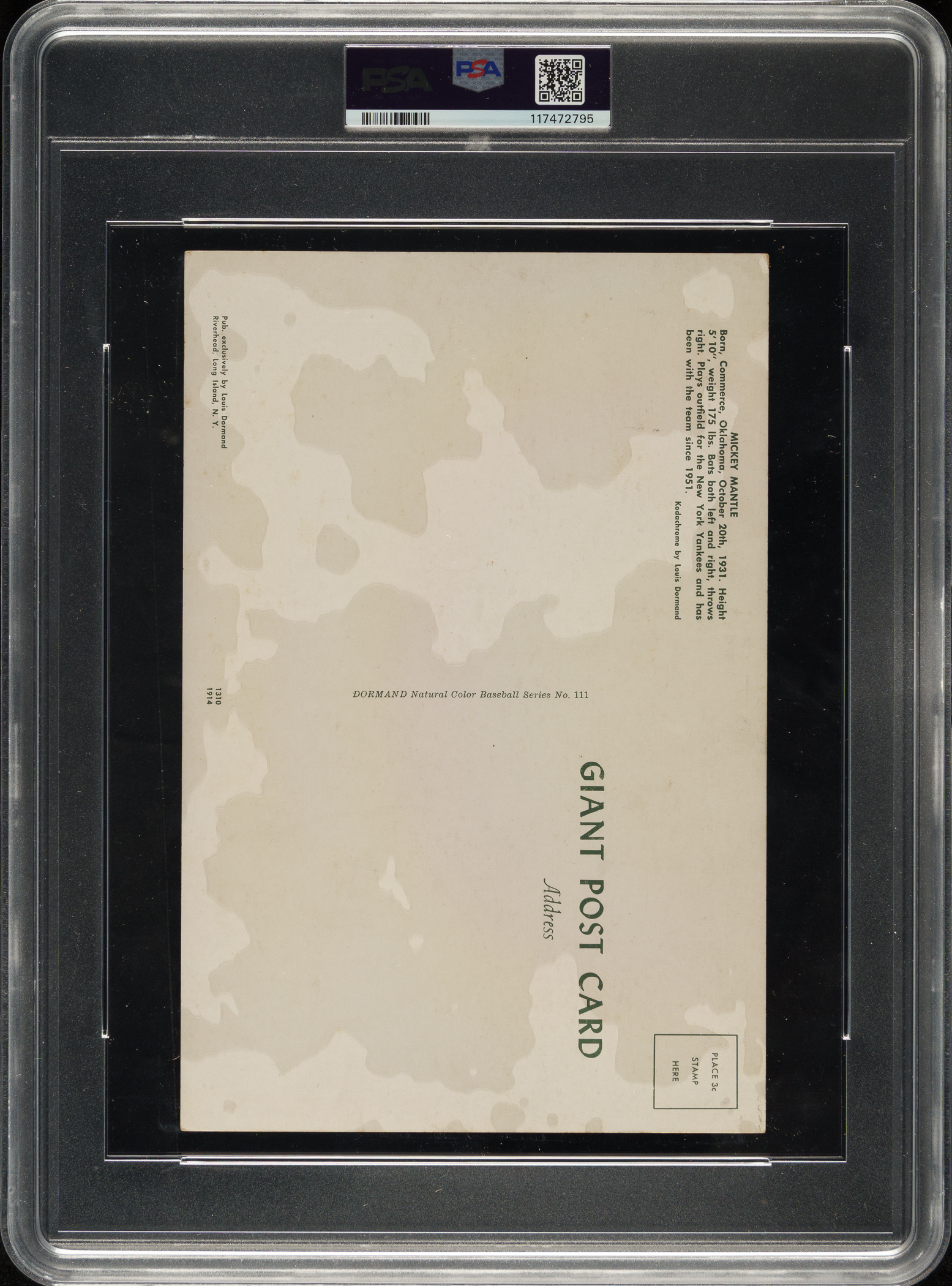Graded VG 3 by PSA (submitted by REA). New York Yankees Hall of Famer Mickey Mantle.