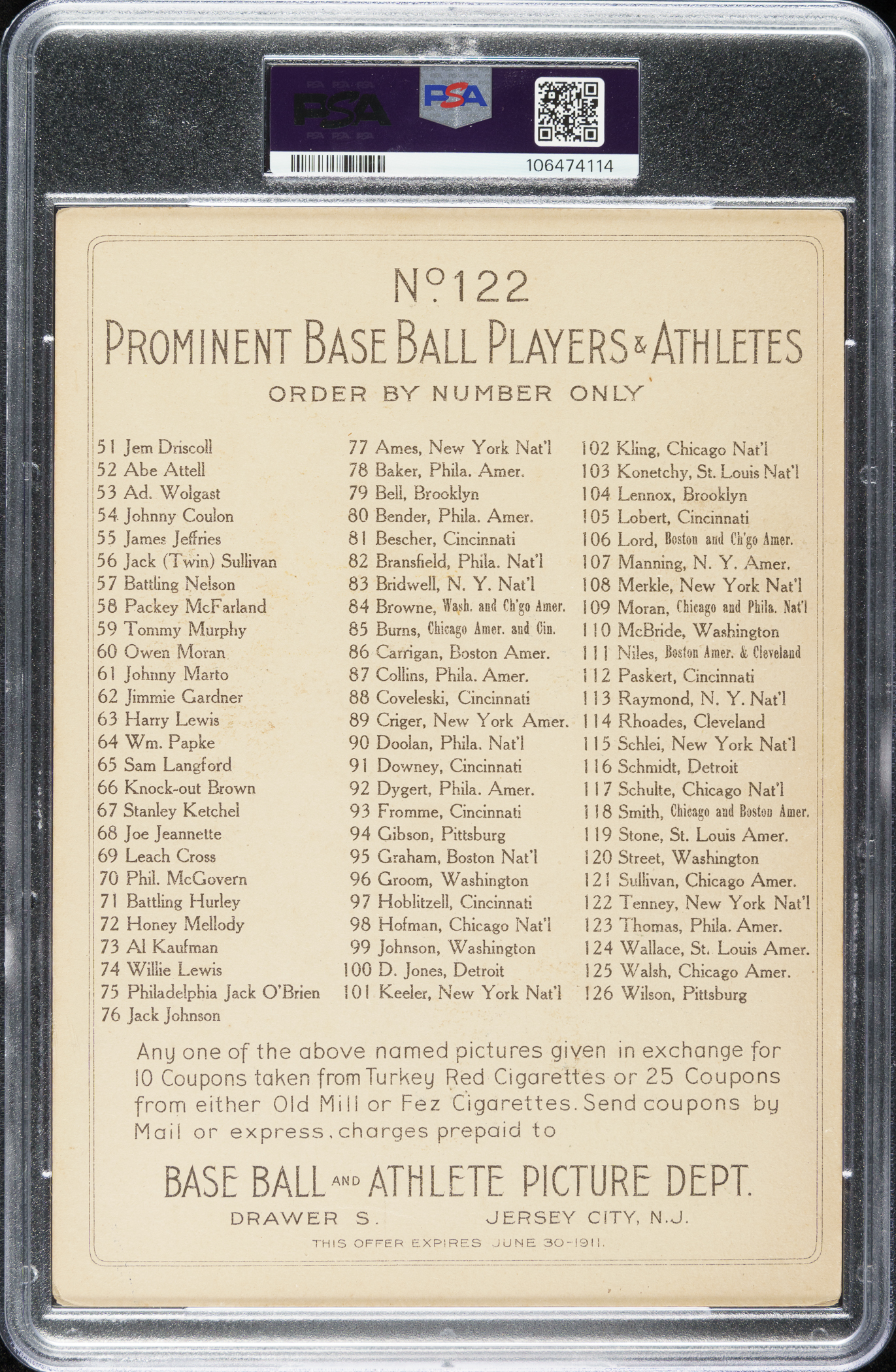 Graded GOOD+ 2.5 by PSA. New York Giants.