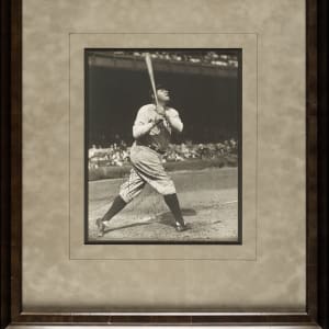 Black-and-white photograph of Babe Ruth as a member of the New York Yankees, inscribed in black fountain pen: "To My Pal/Pete Weslou/Sincerely/Babe Ruth/1934." Both the inscription and signature are slightly faded but clearly legible. This is an appealing image of Ruth, which pictures the fabled "Sultan of Swat" in full swing at the plate during a road game. The photo (8 x 10 inches) is in apparent Excellent condition. Matted and framed to total dimensions of 19 x 16.75 inches. Full LOA from James Spence/JSA. The size/weight of this item requires that there will be an additional shipping charge for this lot.