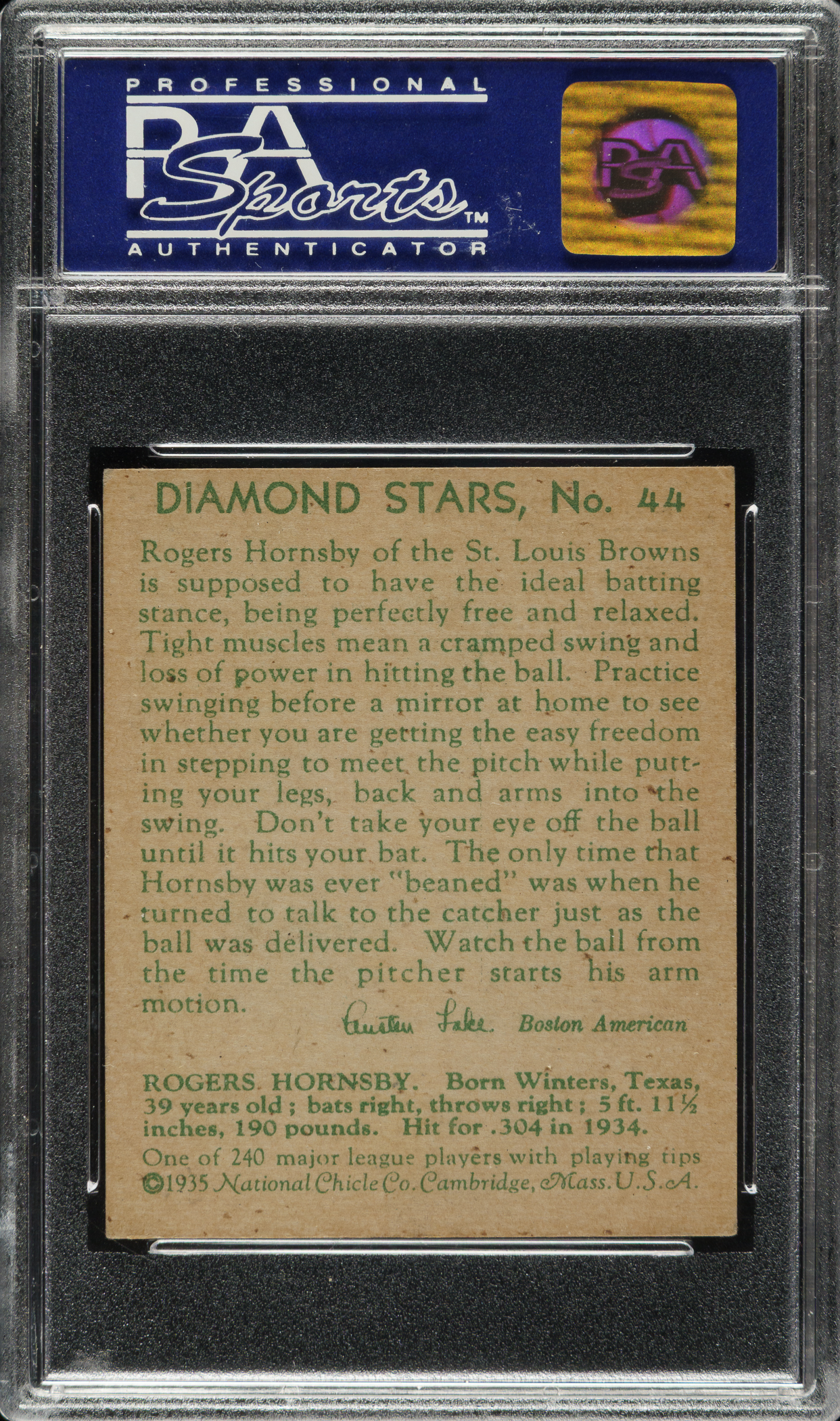 Graded NM 7 by PSA. St. Louis Browns Hall of Famer Rogers Hornsby.