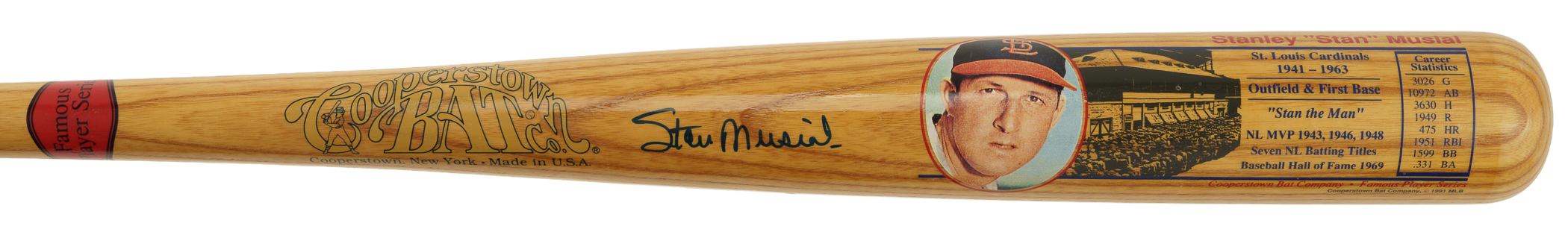 St. Louis Cardinals Hall of Famer Stan Musial signed bat. Auction LOA from James Spence/JSA. The size/weight of this item requires that there will be an additional shipping charge for this lot.