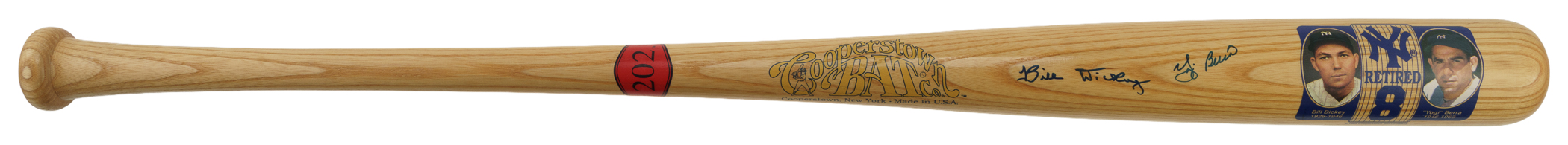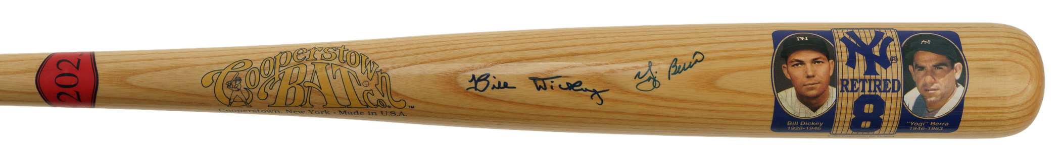 New York Yankees Hall of Famers Bill Dickey and Yogi Berra signed bat. Auction LOA from James Spence/JSA. The size/weight of this item requires that there will be an additional shipping charge for this lot.