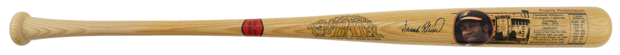 Baltimore Orioles Hall of Famer Frank Robinson signed bat. Auction LOA from James Spence/JSA. The size/weight of this item requires that there will be an additional shipping charge for this lot.