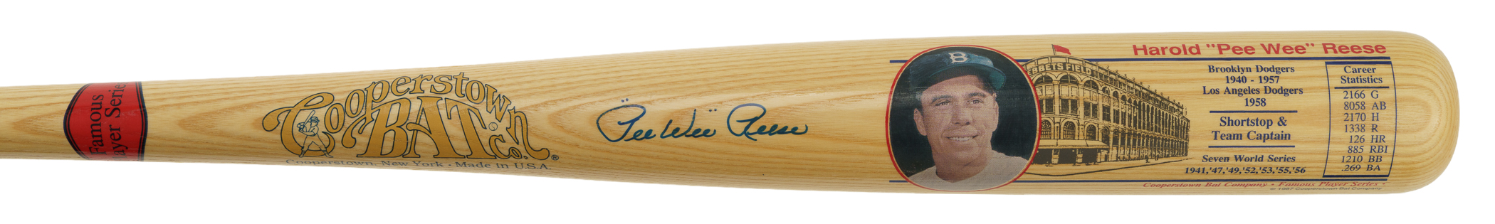Brooklyn Dodgers Hall of Famer Pee Wee Reese signed bat. Auction LOA from James Spence/JSA. The size/weight of this item requires that there will be an additional shipping charge for this lot.