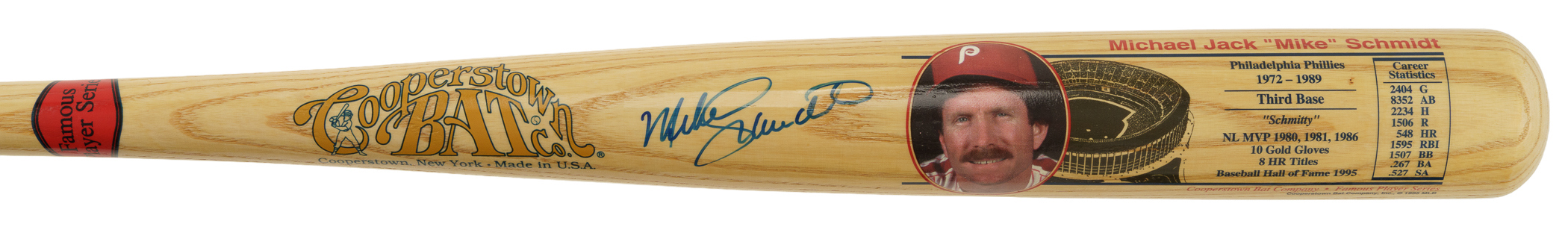 Philadelphia Phillies Hall of Famer Mike Schmidt signed bat. Auction LOA from James Spence/JSA. The size/weight of this item requires that there will be an additional shipping charge for this lot.