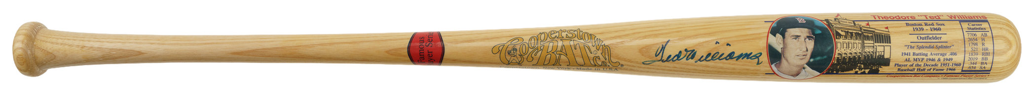 Boston Red Sox Yankees Hall of Famer Ted Williams signed bat. Full LOA from James Spence/JSA. The size/weight of this item requires that there will be an additional shipping charge for this lot.
