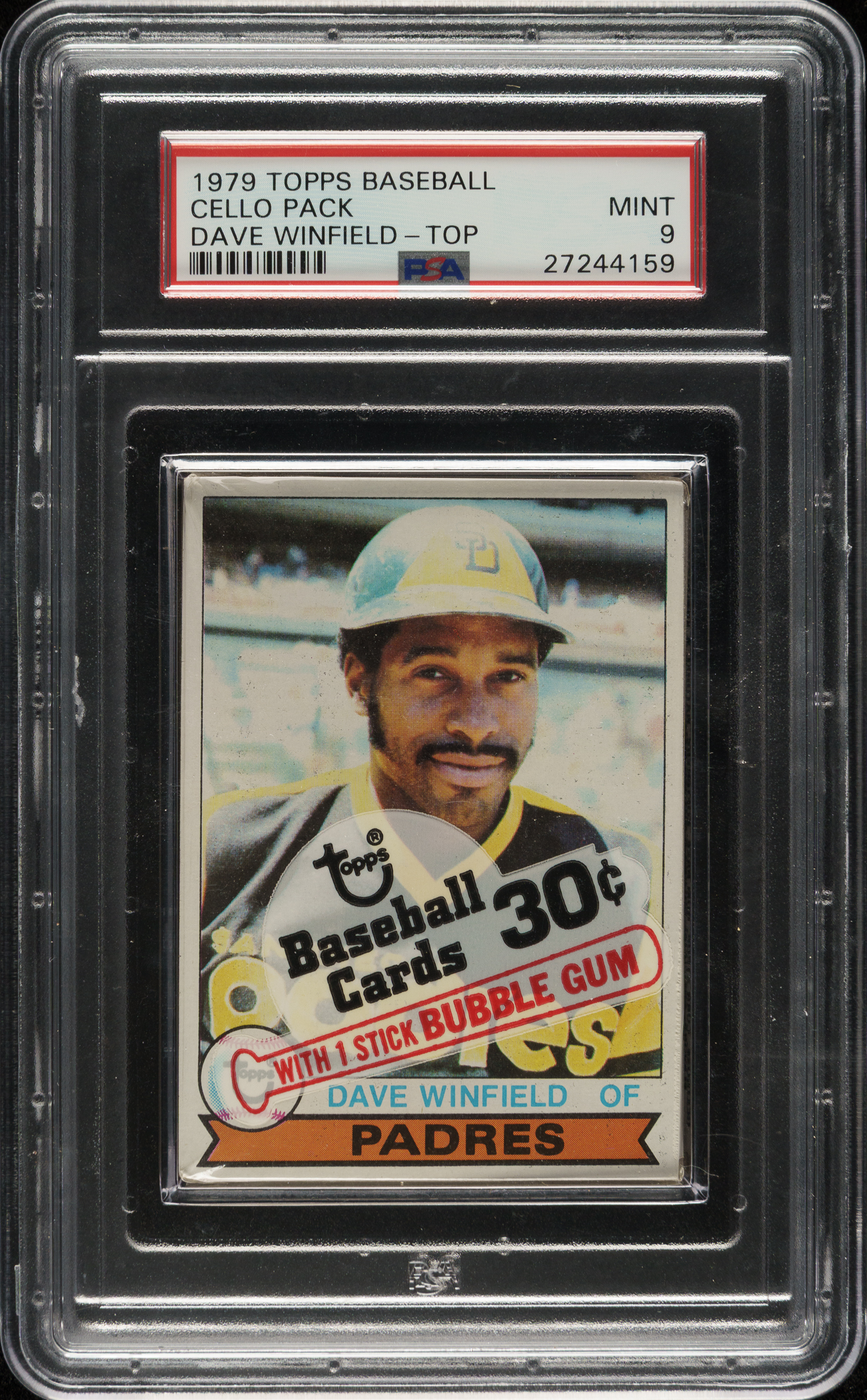 Lot # 3715: 1979 Topps Unopened Cello Pack PSA MINT 9 - Dave Winfield on Top