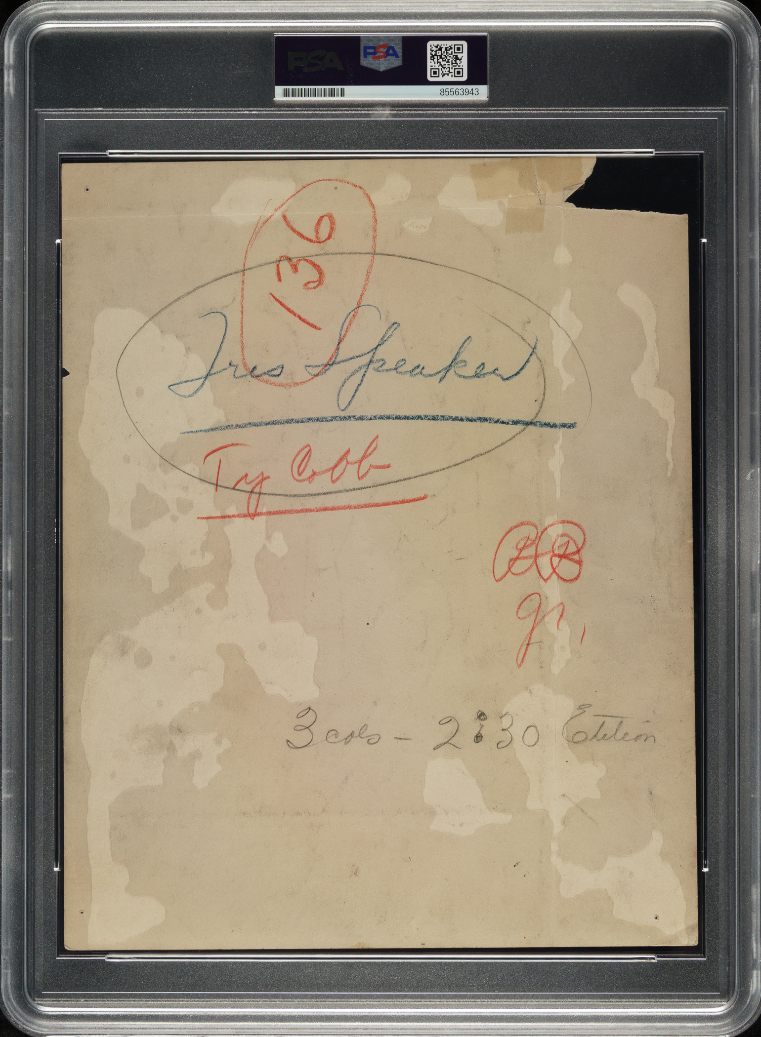 Encapsulated and certified as an original Type I photograph by PSA/DNA. Hall of Famers Ty Cobb (Detroit Tigers) and Tris Speaker (Boston Red Sox). Dimensions: 8 x 10 inches.