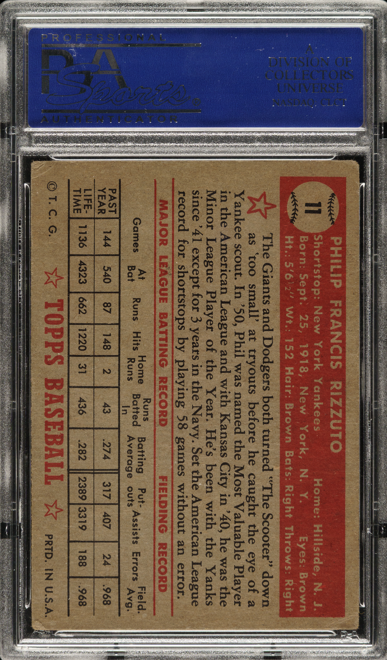 Graded VG 3 by PSA. New York Yankees Hall of Famer Phil Rizzuto.