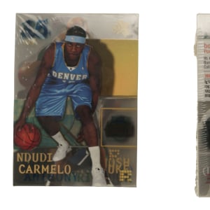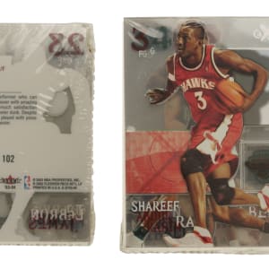 Unopened, complete set of 2003-2004 Fleer E-X basketball. The 102-card set is highlighted by the rookie cards of LeBron James, Carmelo Anthony, and Dwyane Wade. According to our consignor, he bought the set directly from Fleer, as seen packaged here.