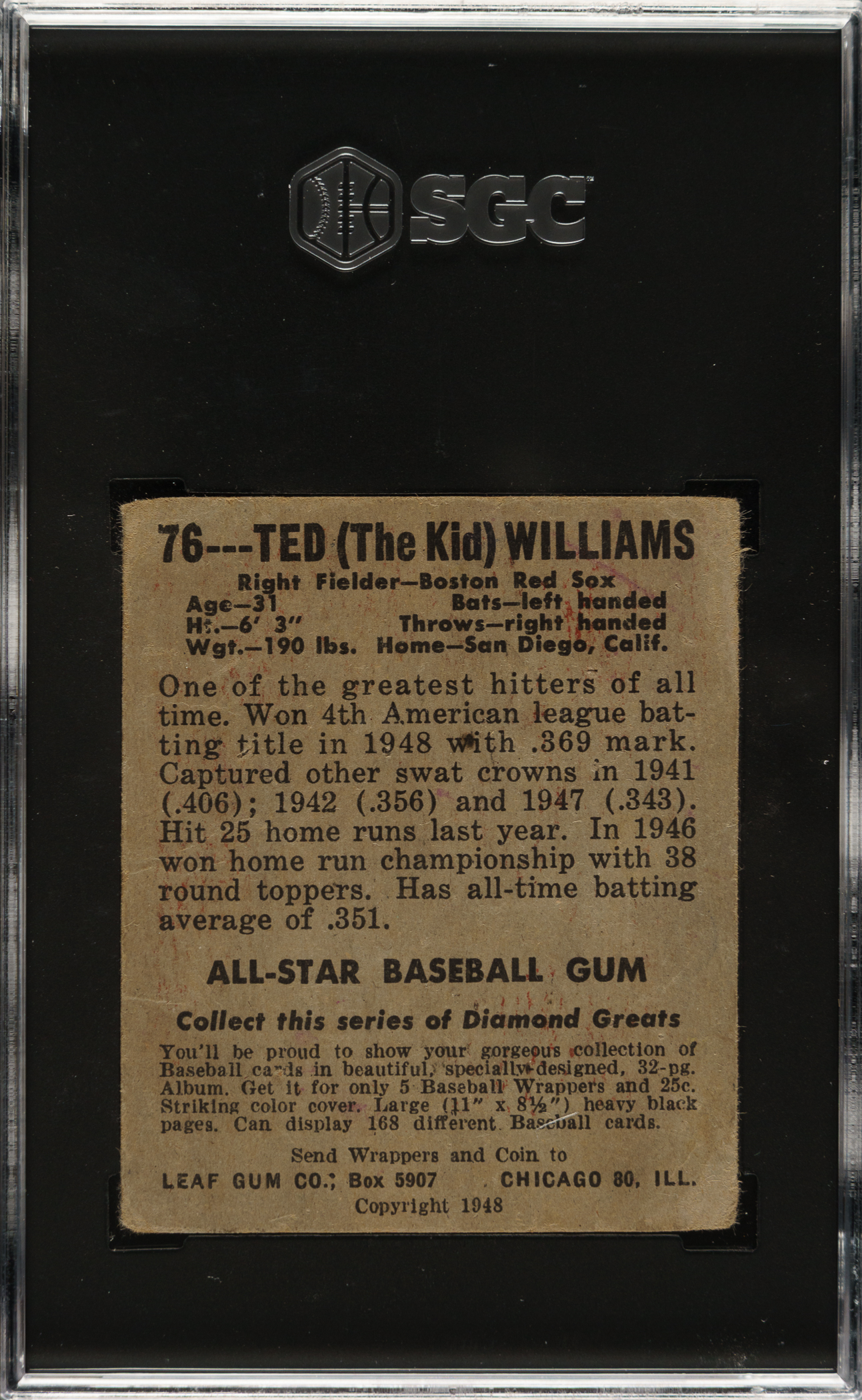 Graded FAIR 1.5 by SGC. Boston Red Sox Hall of Famer Ted Williams.