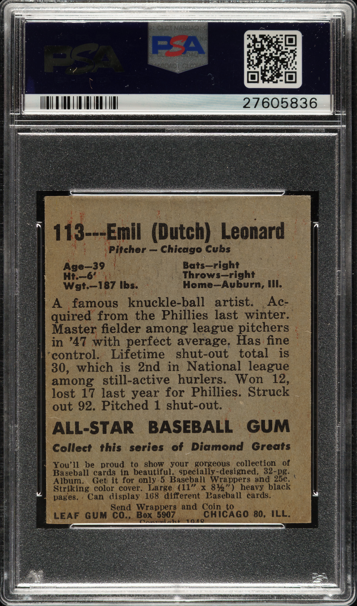 Graded GOOD 2 by PSA. Chicago Cubs.