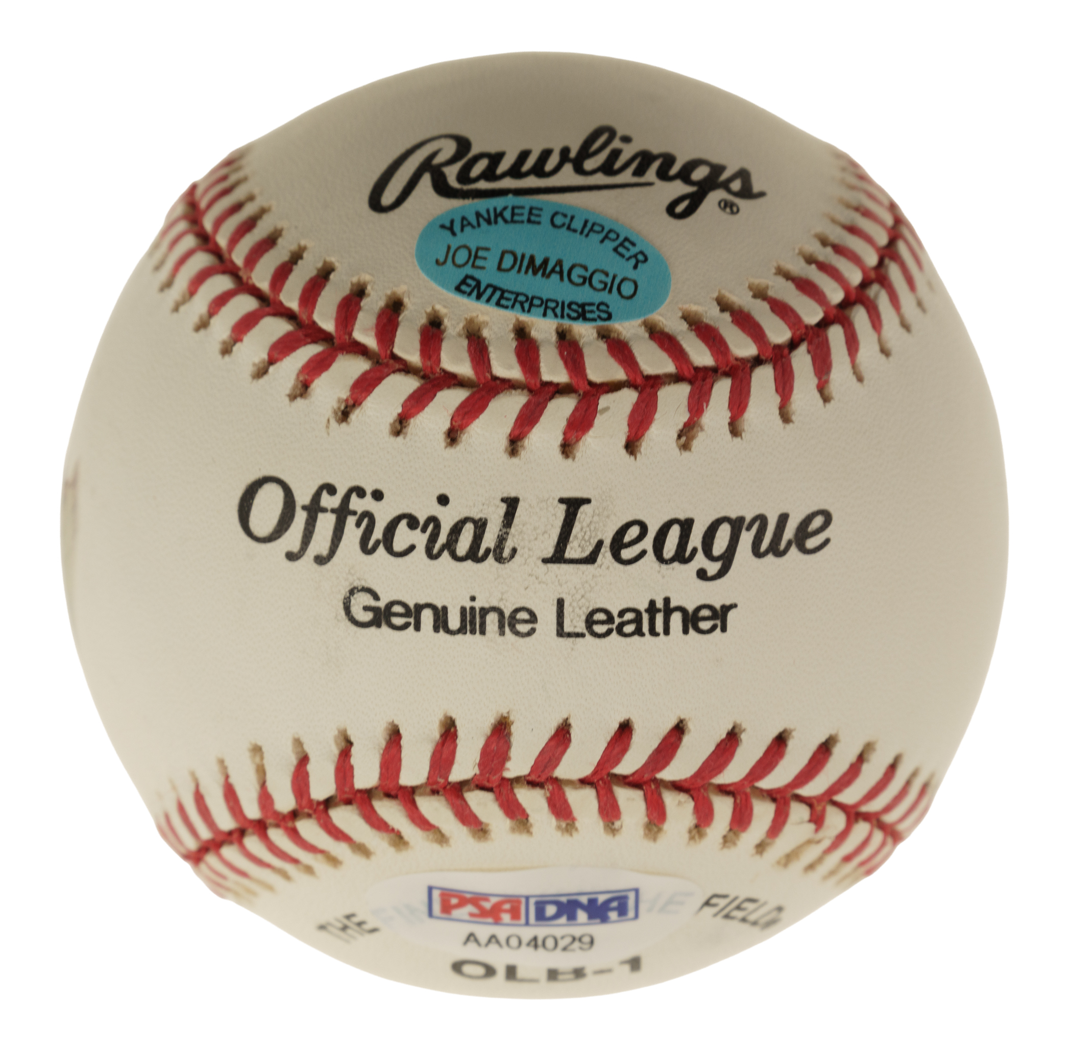 New York Yankees Hall of Famer Joe DiMaggio single-signed baseball. PSA/DNA has graded the signature MINT 9 and the baseball MINT 9 for an overall grade of MINT 9.