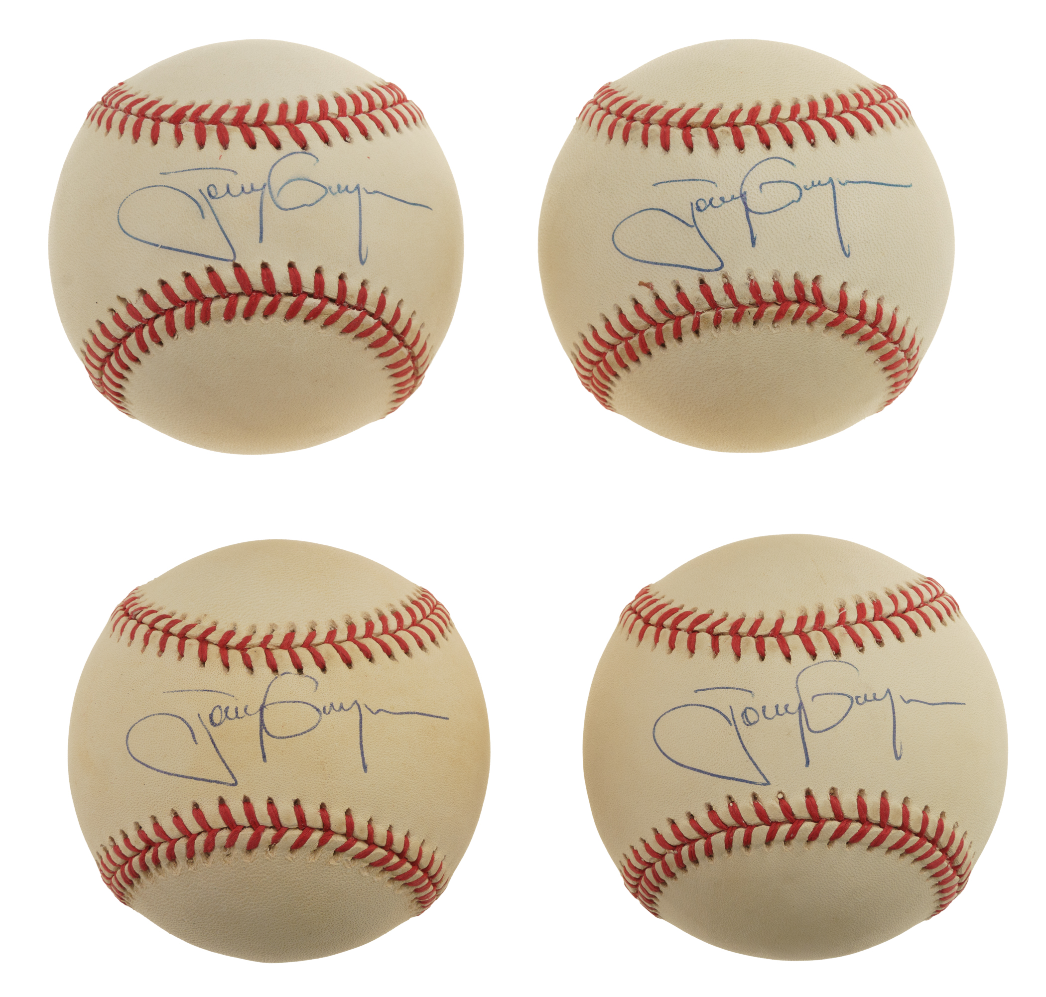 Collection of twelve San Diego Padres Hall of Famer Tony Gwynn single-signed baseballs. Basic certifications from Upper Deck. Auction LOA from James Spence/JSA. The size/weight of this item requires that there will be an additional shipping charge for this lot.