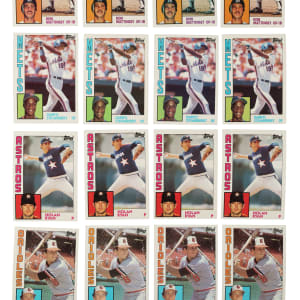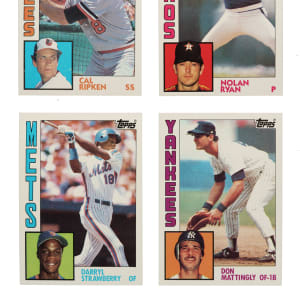 Presented is a collection of five 792-card complete sets of 1984 Topps baseball cards. Overall condition ranges from Ex to Mint (averaging Nr/Mt), including 3% lesser. Keys: Five #8 Mattingly RC (two Nr/Mt-Mt+, two Nr/Mt-Mt, and Vg-Ex), five 182 Strawberry RC (two Nr/Mt-Mt, Nr/Mt+, Nr/Mt, and Vg-Ex), five 470 Ryan (Nr/Mt-Mt, Nr/Mt, and three Ex-Mt due to centering), and five 490 Ripken (two Mint, Nr/Mt+, and two Nr/Mt). Total: 5 sets, 3,960 cards. The size/weight of this item requires that there will be an additional shipping charge for this lot.