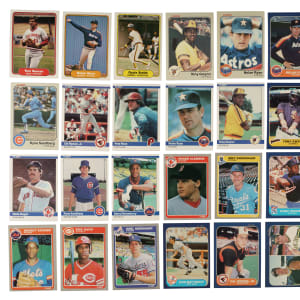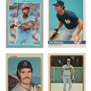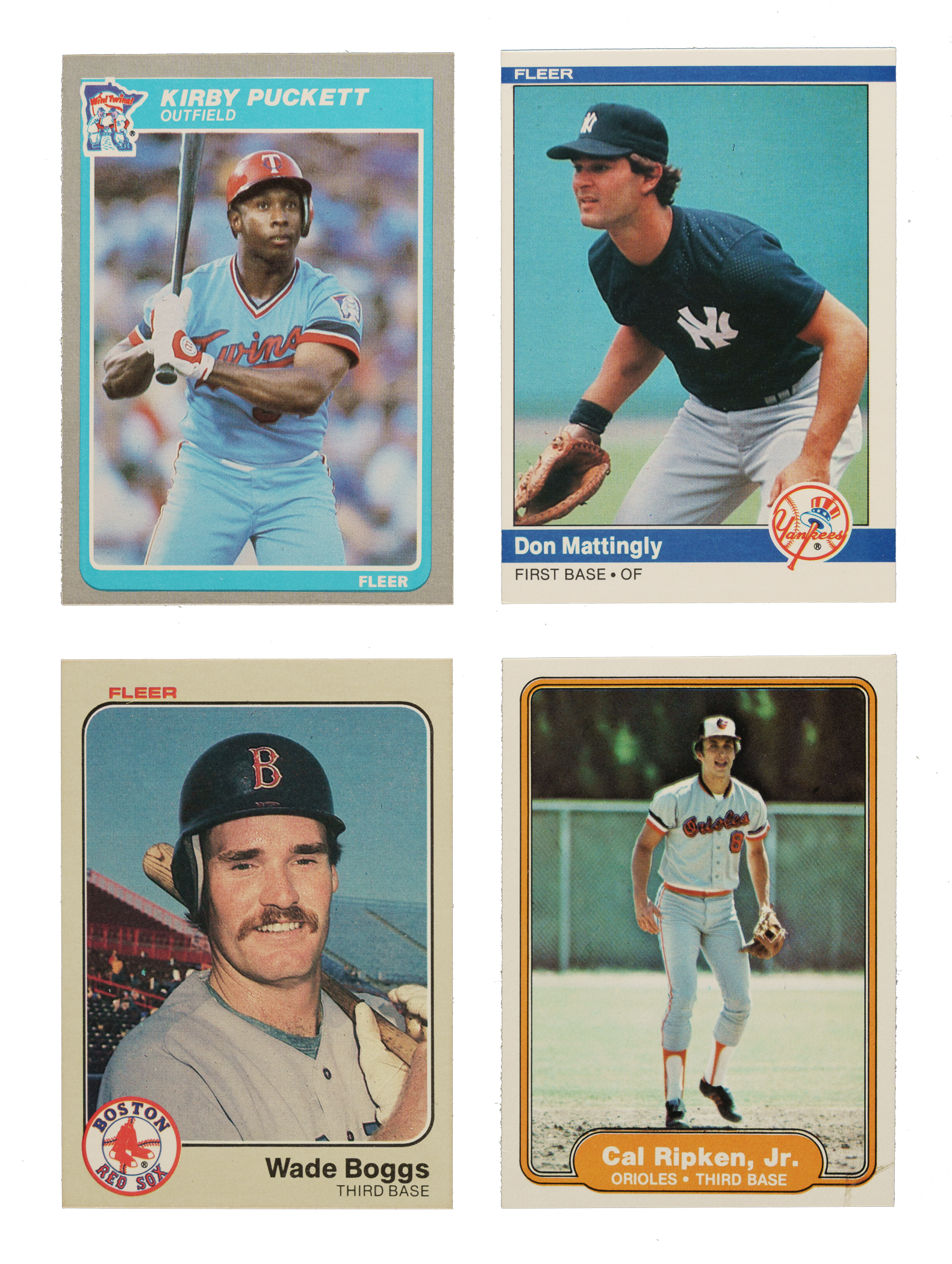 Presented is a complete set collection of 1982 to 1986 Fleer baseball cards. This collection consists of the following: 1) 1982 Fleer Complete Set (660): Condition ranges from Ex-Mt to Mint (averaging Nr/Mt/Nr/Mt-Mt), including 3% lesser. Keys: #82 Seaver (Nr/Mt-Mt+), 176 Ripken Jr. RC (Nr/Mt due to print mark), 229 Ryan (Nr/Mt-Mt), and 603 Smith (Nr/Mt-Mt). 2) 1983 Fleer Complete Set (660): Condition ranges from Ex-Mt to Mint (averaging Nr/Mt/Nr/Mt-Mt), including 3% lesser. Keys: #179 Boggs RC (Nr/Mt+), 360 Gwynn RC (Mint), 463 Ryan (Nr/Mt-Mt), and 507 Sandberg RC (Nr/Mt-Mt). 3) 1984 Fleer Complete Set (660): Condition ranges from Ex to Mint (averaging Nr/Mt), including a few lesser. Keys: #17 Ripken, 46 Rose, 131 Mattingly RC (Nr/Mt), 239 Ryan, 301 Gwynn, 392 Boggs, 504 Sandberg, and 599 Strawberry RC (Nr/Mt+). 4) 1985 Fleer Complete Set (660): Condition ranges from Ex to Mint (averaging Nr/Mt/Nr/Mt-Mt). Keys: #82 Gooden RC (Ex+ due to centering), 155 Clemens RC (Nr/Mt-Mt), 212 Saberhagen RC (Nr/Mt), 286 Puckett RC (Nr/Mt), 371 Hershiser RC (Mint), and 533 Davis RC (Nr/Mt). 5) 1986 Fleer Complete Set (660): Condition ranges from Ex-Mt to Mint (averaging Nr/Mt/Nr/Mt-Mt), including 2% lesser. Keys: #109 Mattingly, 284 Ripken, 310 Ryan, 323 Gwynn, 401 Puckett (Nr/Mt-Mt), and 649 Canseco RC (Nr/Mt). Total: 5 sets, 3,300 cards. The size/weight of this item requires that there will be an additional shipping charge for this lot.