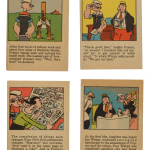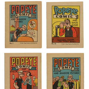 Presented is a very rare and desirable complete set of R113 "Popeye Comics" issued by the Orbit Gum Co. in 1933. Each of these booklets (2 x 2.5 inches), which features "Popeye the Sailor Man" in a number of different adventures, folds out lengthwise to reveal cartoons on one side, and a black-and-white game on the other. The booklets range in condition from Gd to Ex (averaging Vg/Vg-Ex), with a couple lesser. This is one of the all-time classic 1930s nonsport sets. In addition, this set naturally has a great crossover appeal to both comic and character collectors. These somewhat fragile booklets are naturally very susceptible to damage, making the assembly of high-grade sets a significant challenge for collectors. The "Popeye Comics" booklets are among the most desirable of all 1930s nonsport issues. This is a very attractive and very rarely seen set of this condition-sensitive issue. Total: 30 booklets.