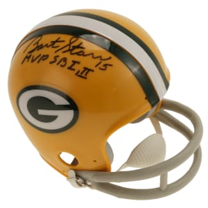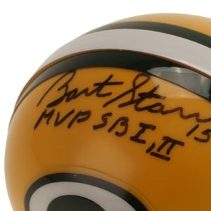 Green Bay Packers Hall of Famer Bart Starr signed mini helmet. Auction LOA from James Spence/JSA. The size/weight of this item requires that there will be an additional shipping charge for this lot.