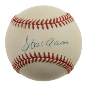Milwaukee Braves Hall of Famer Hank Aaron signed baseball. Auction LOA from James Spence/JSA.