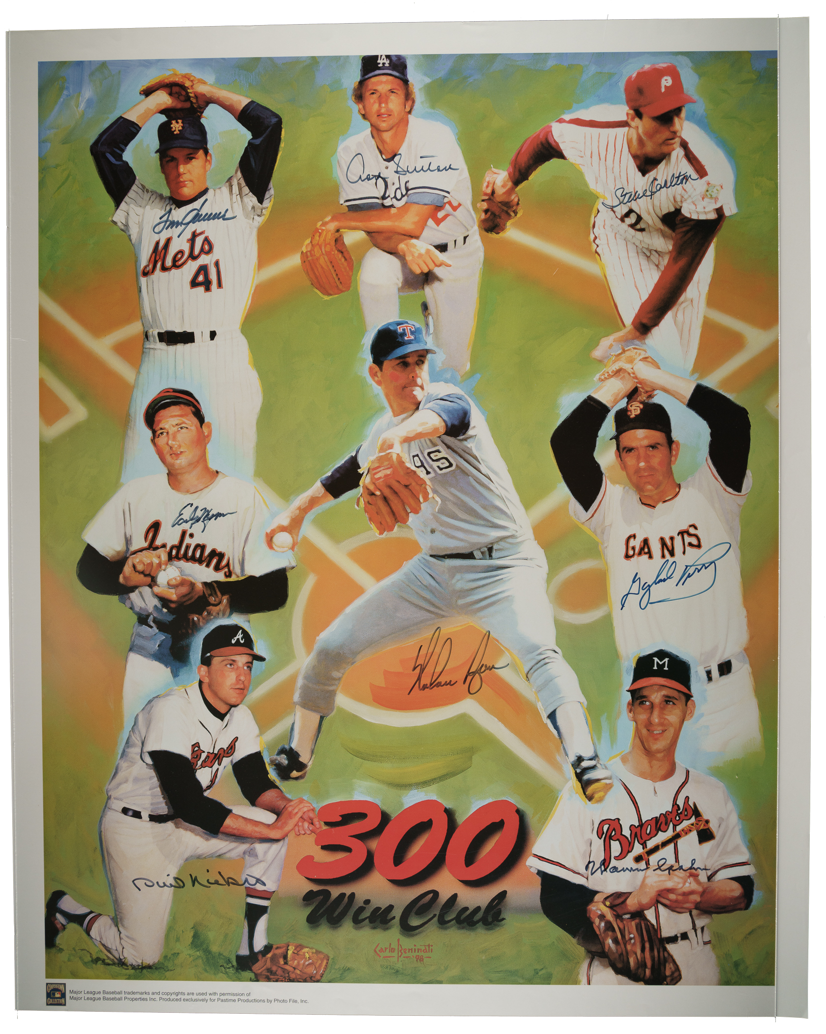 300 Win Club multi-signed poster. Total dimensions: 25 x 31 Inches. This poster is signed by the following: Tom Seaver, Don Sutton, Steve Carlton, Early Wynn, Nolan Ryan, Gaylord Perry, Phil Niekro and Warren Spahn. Auction LOA from James Spence/JSA. The size/weight of this item requires that there will be an additional shipping charge for this lot.