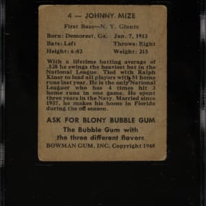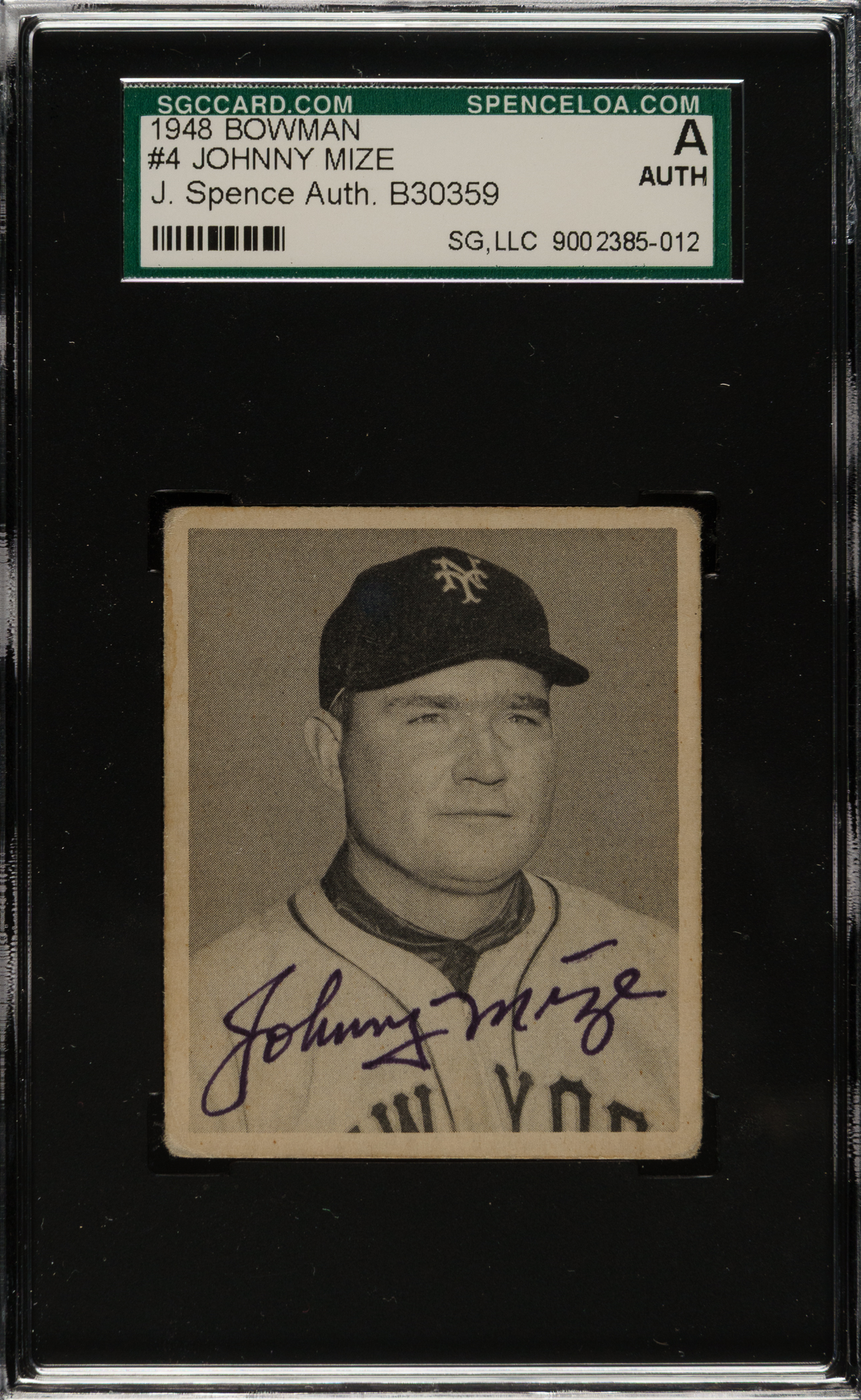 SGC/JSA has encapsulated the card, grading the signature Authentic. New York Giants Hall of Famer Johnny Mize.