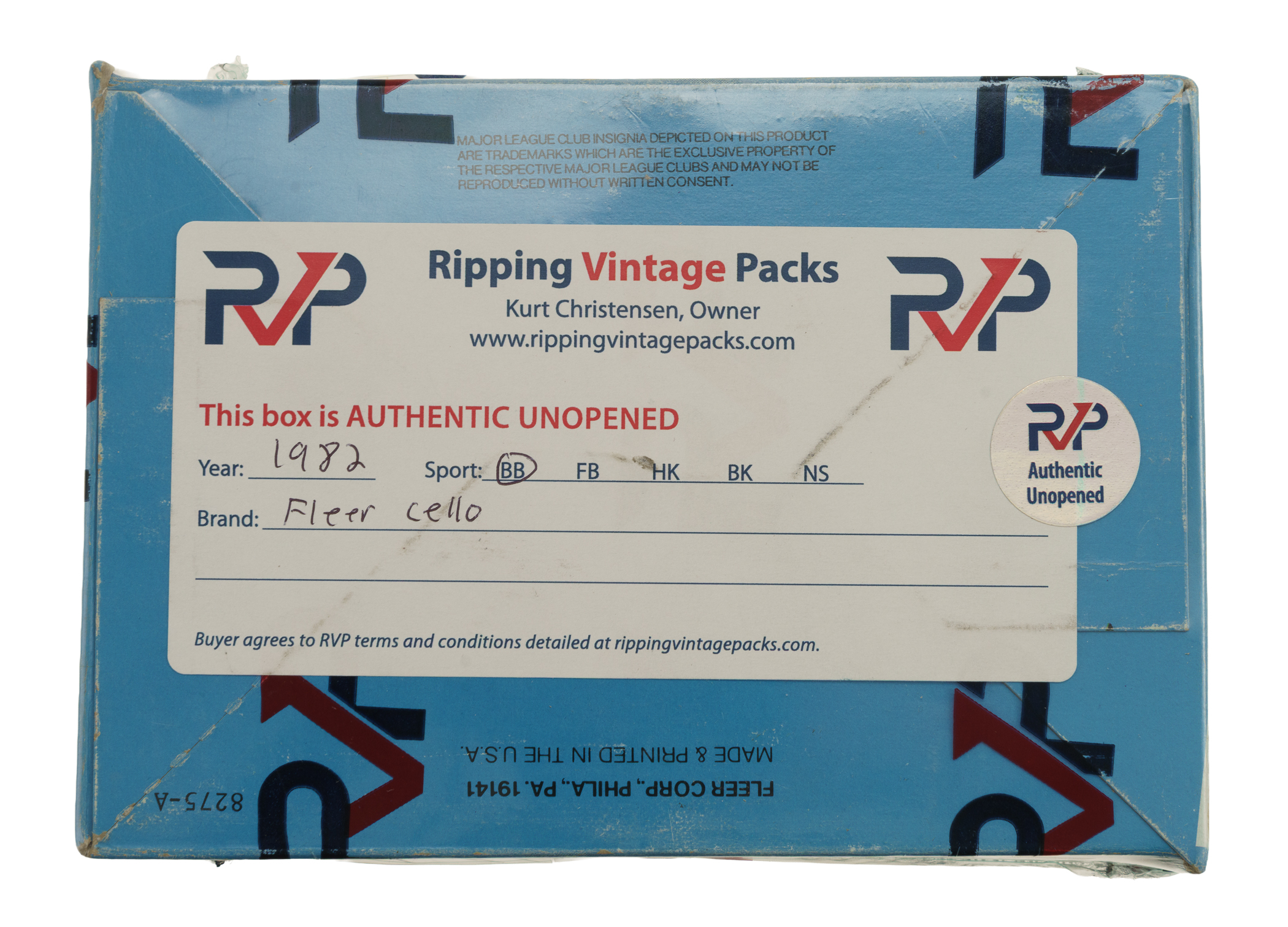 The box comes shrink-wrapped by Ripping Vintage Packs (owned by Kurt Christensen, one of the most advanced collectors of unopened material).