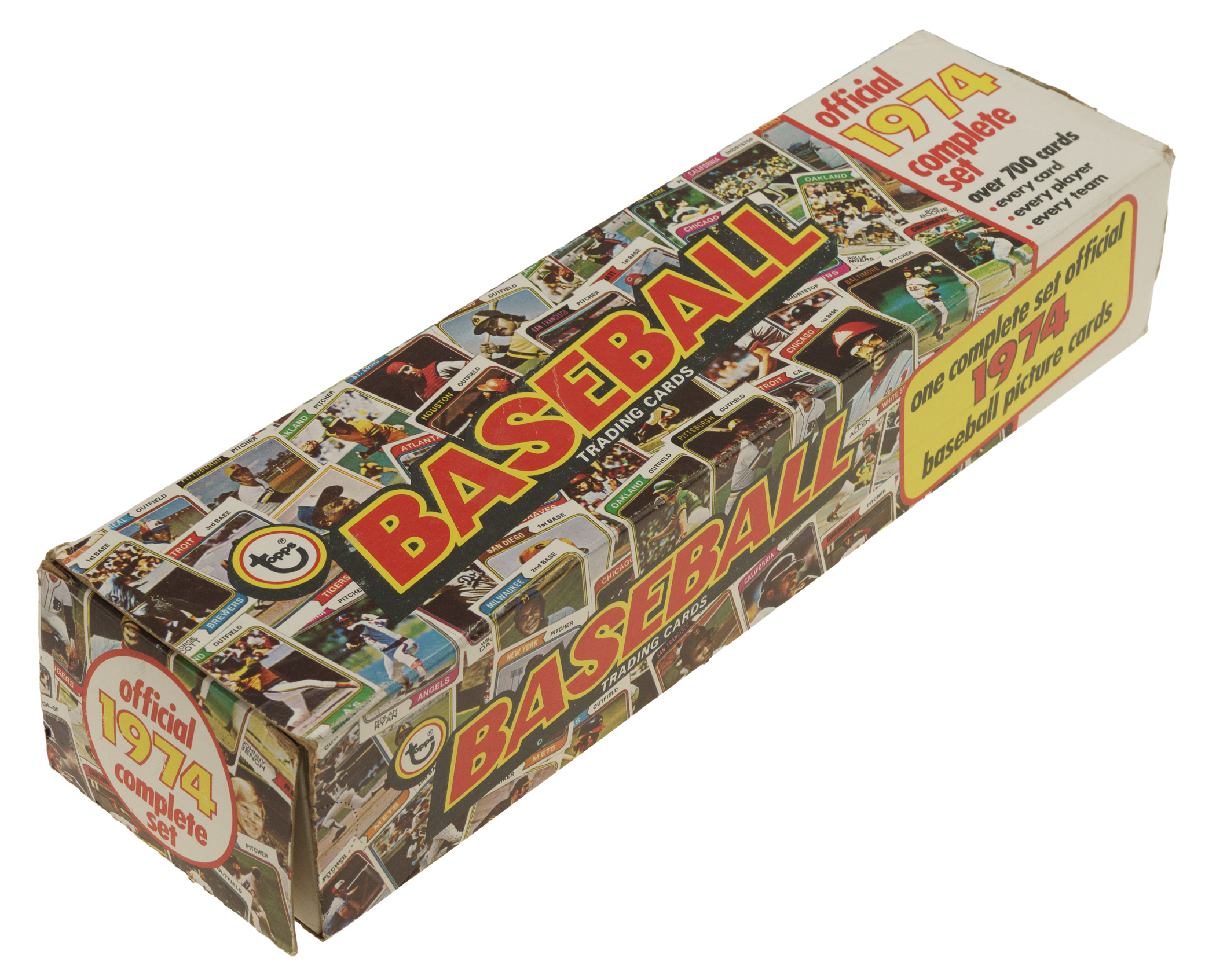 Rarely seen factory set of 1974 Topps baseball. This historic issue marked the first time Topps offered complete factory sets, available exclusively through JCPenney's department store catalog. Additionally, these factory sets also included the first Topps Traded cards, a special subset created to update players who had been dealt to new teams after the main set was finalized. The experiment was discontinued after this release, not reappearing until 1985, making 1974 factory sets significantly rarer than their 1980s and beyond counterparts. This boxed set, containing over 700 cards, is highlighted by the rookie cards of Hall of Famers Dave Winfield and Dave Parker, along with key cards of Nolan Ryan, Mike Schmidt, and Tom Seaver. Three end flaps of the outer box are detached but included. In our opinion, despite the box being opened, the expected curl pattern of the cards inside appears to be fully intact.