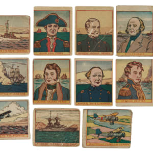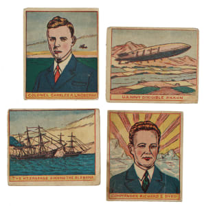 Presented is a partial set of 1930s R127 Navy "Series of 24" trading cards consisting of fifteen different cards (out of 24), highlighted by Charles Lindbergh. Condition ranges from Pr to Vg (averaging Fr). Key: Lindbergh (Gd+). Missing the following nine cards for completion: #503, 505, 506, 509, 511, 515, 516, 522, and 524. Total: 15 cards.