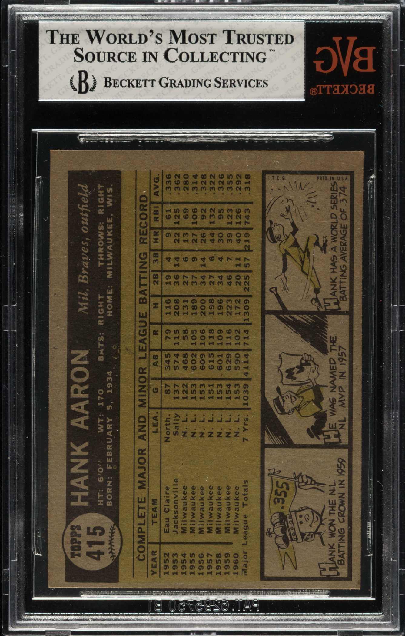 Graded EX-MT+ 6.5 by BVG. Milwaukee Braves Hall of Famer Hank Aaron.