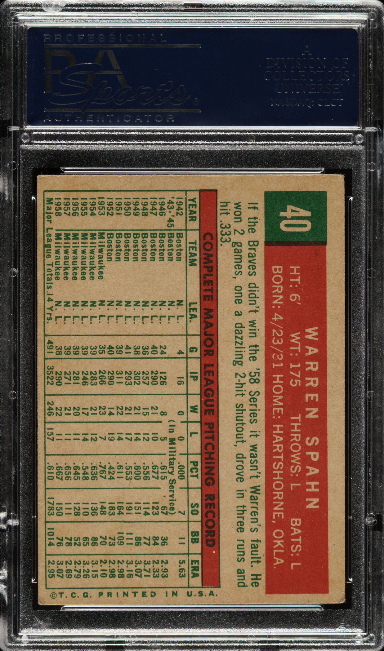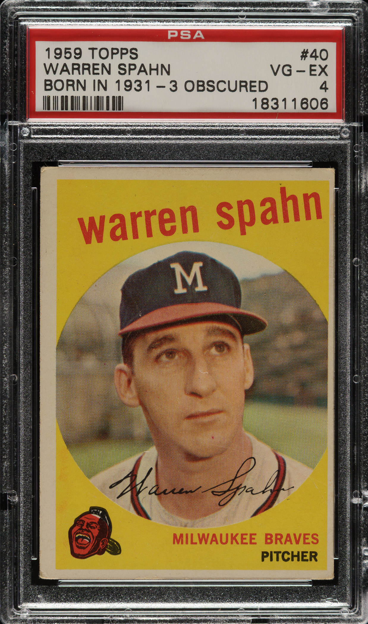 Graded VG-EX 4 by PSA. Milwaukee Braves Hall of Famer Warren Spahn.