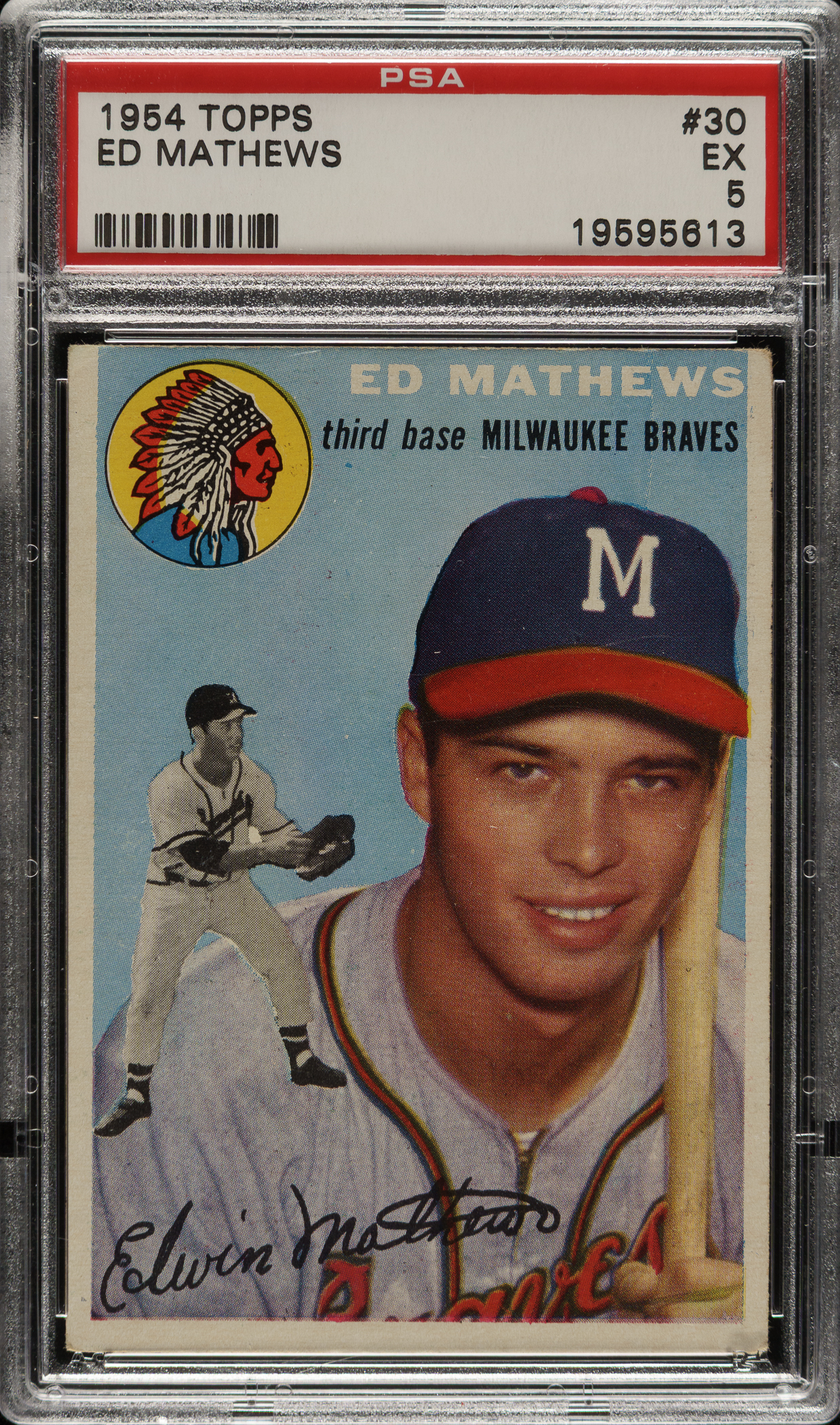 Graded EX 5 by PSA. Milwaukee Braves Hall of Famer Eddie Mathews.
