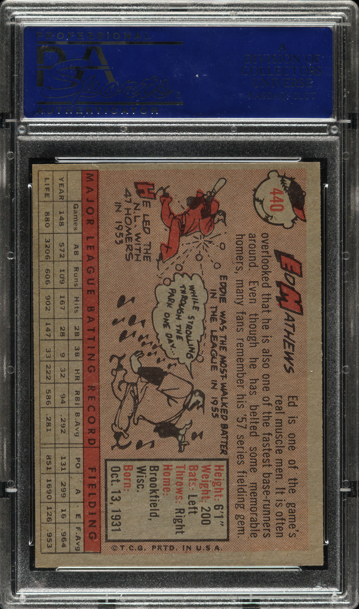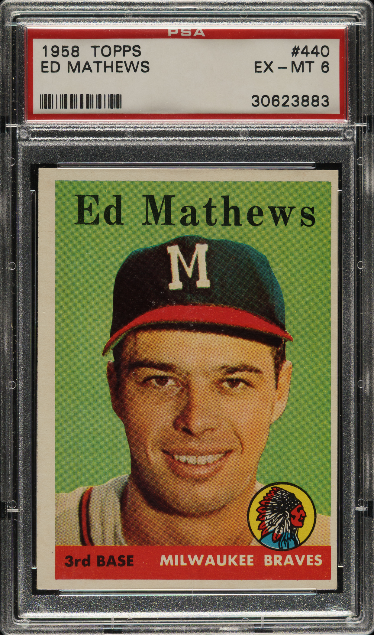 Graded EX-MT 6 by PSA. Milwaukee Braves Hall of Famer Ed Mathews.
