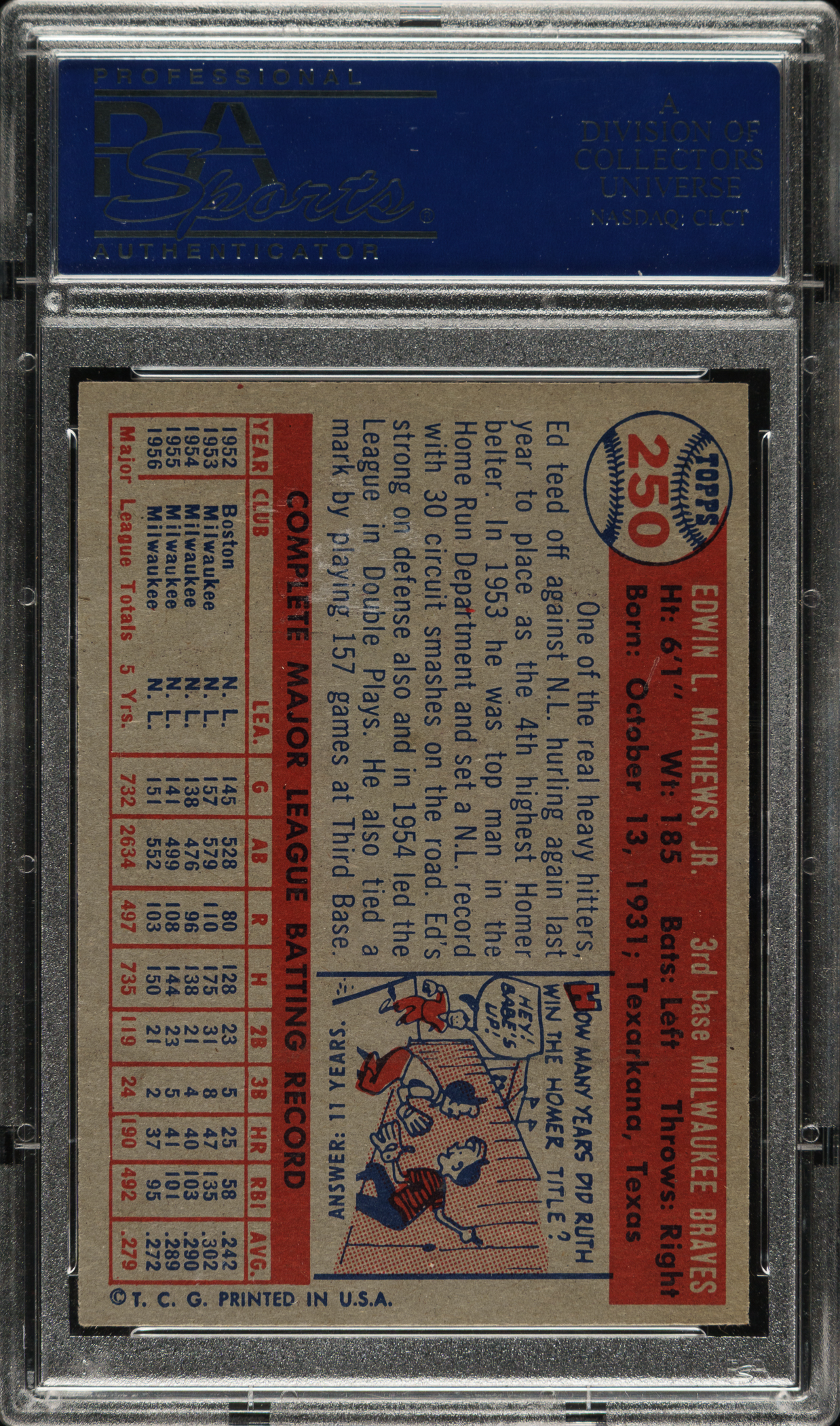 Graded NM-MT 8 by PSA. Milwaukee Braves Hall of Famer Ed Mathews.