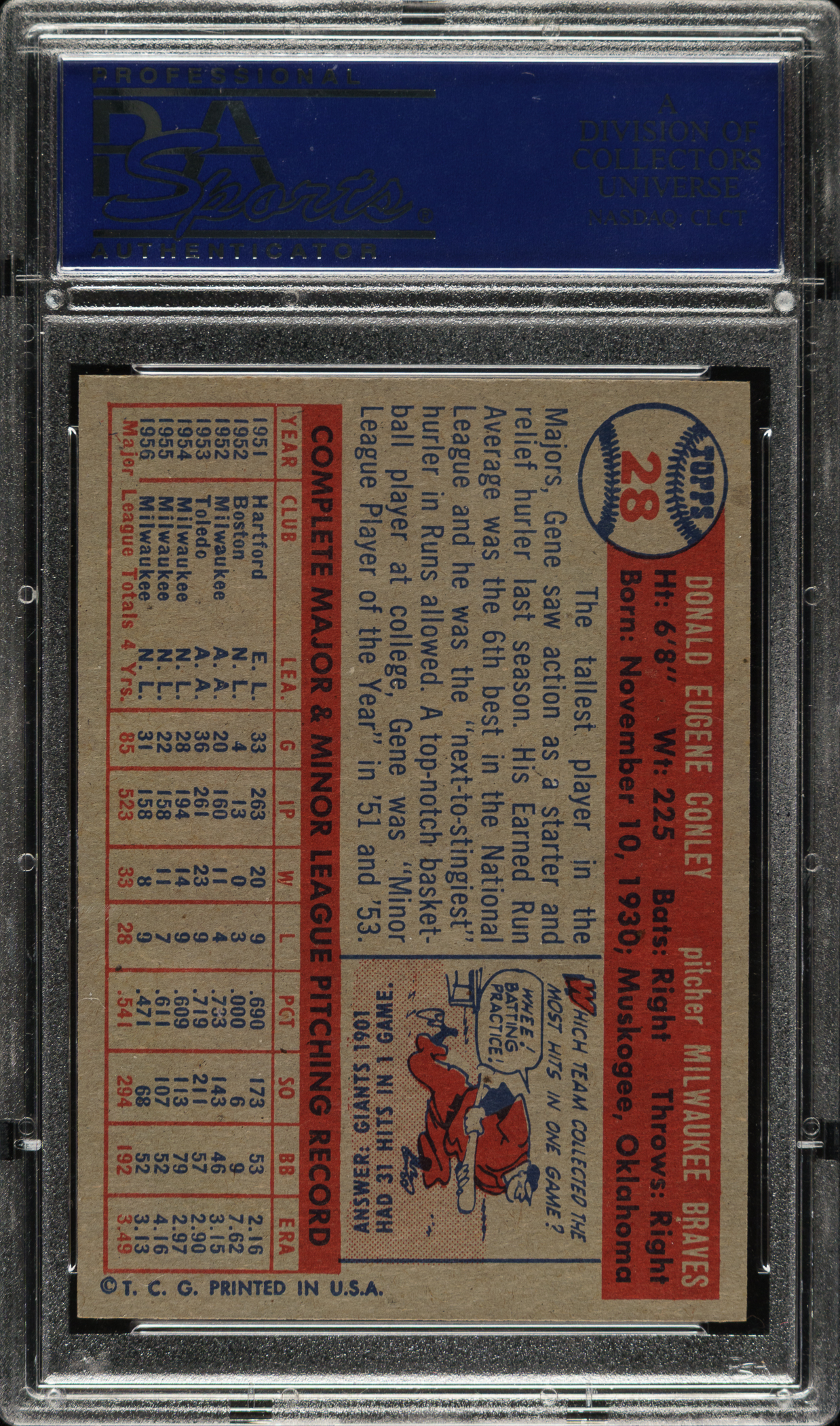 Lot # 2748: 1957 Topps #28 Gene Conley PSA NM-MT 8