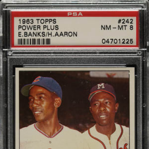 Graded NM-MT 8 by PSA. Chicago Cubs and Milwaukee Braves Hall of Famers Ernie Banks and Hank Aaron.
