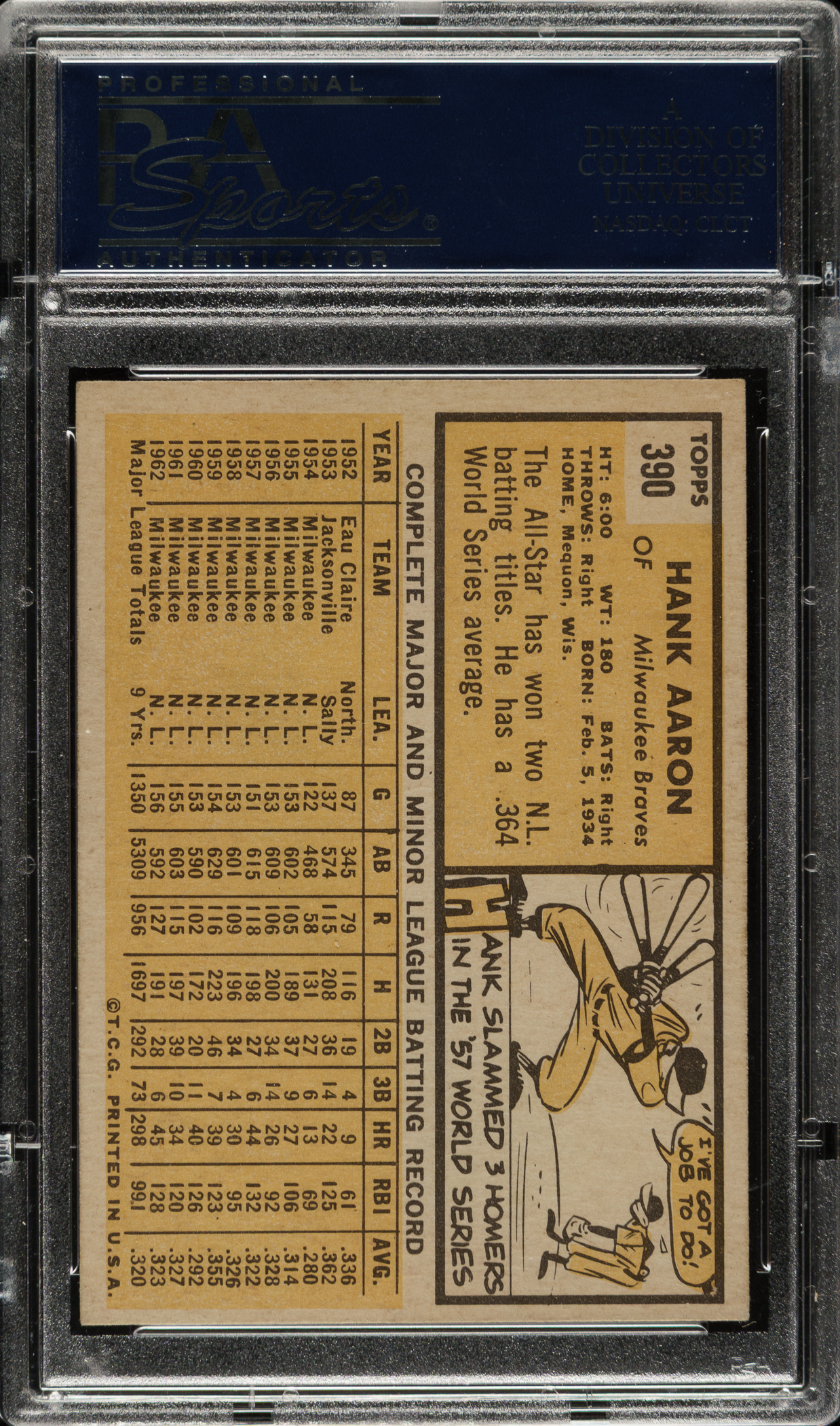 Lot # 2973: 1963 Topps #390 Hank Aaron PSA EX-MT 6