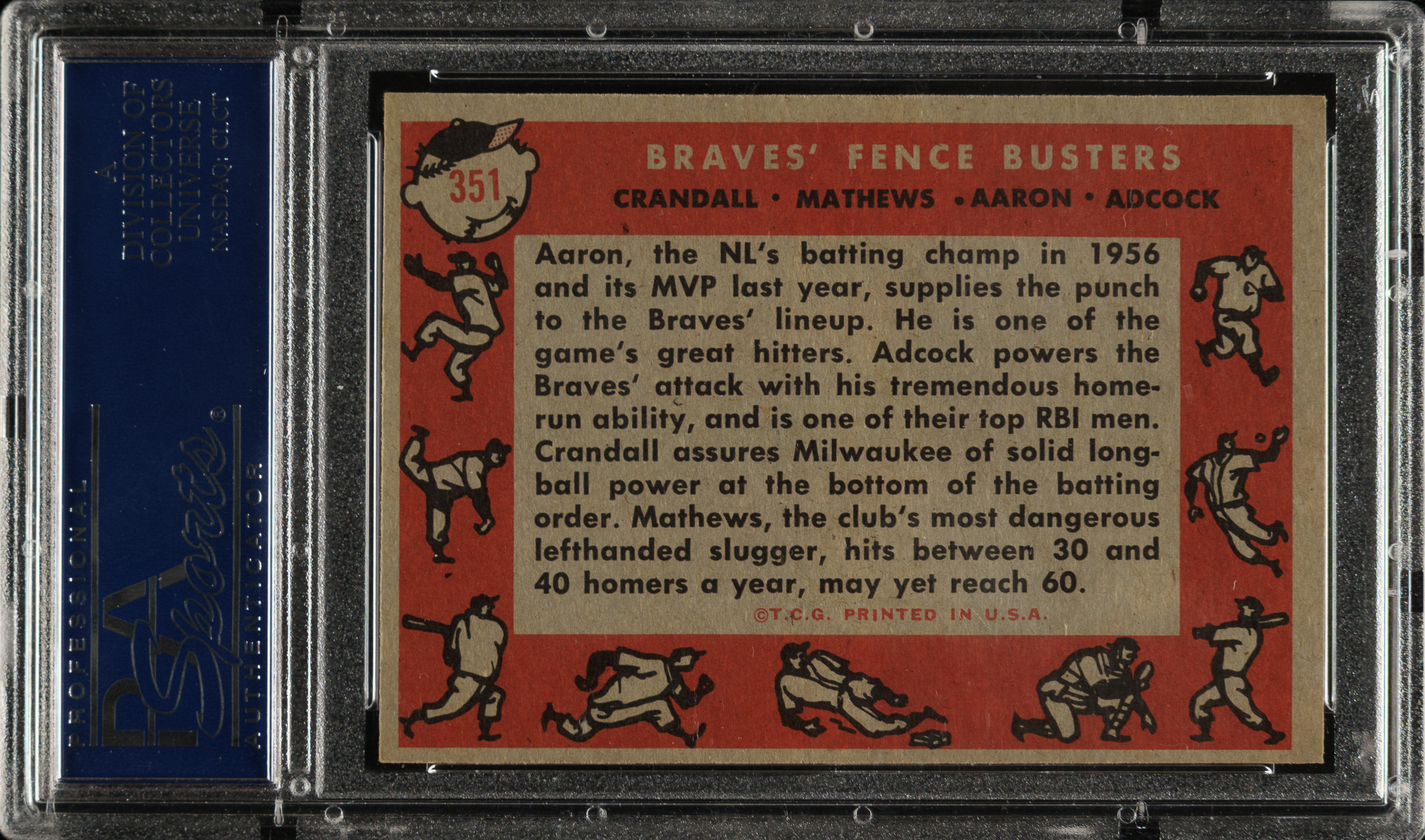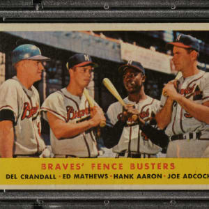 Graded NM 7 by PSA. Milwaukee Braves Hall of Famers Hank Aaron and Eddie Mathews.