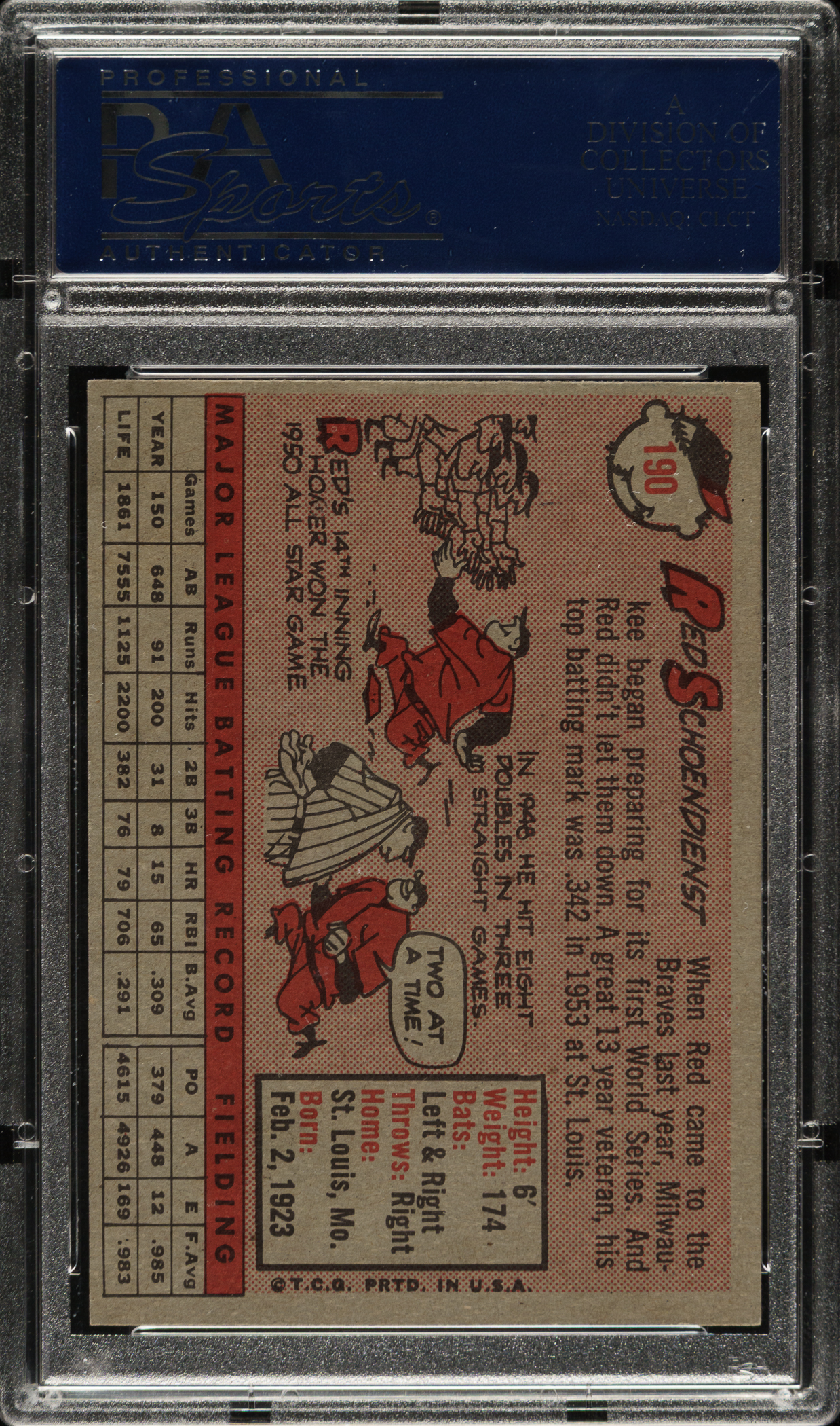 Graded NM 7 by PSA. Milwaukee Braves Hall of Famer Red Schoendienst.