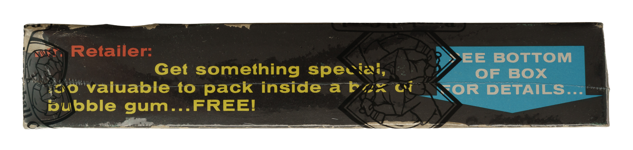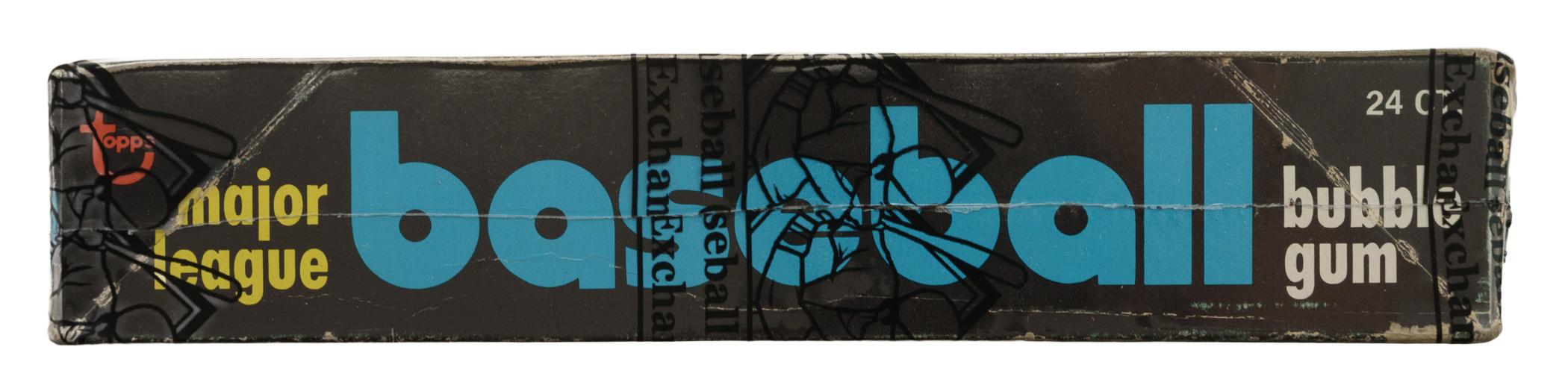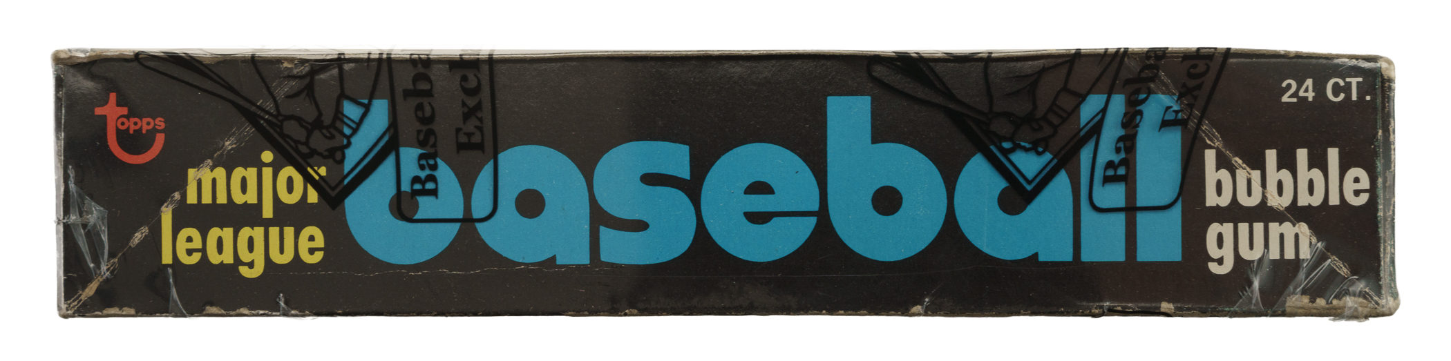 Complete, original unopened wax box of 1971 Topps baseball. The box houses 24 packs with each pack containing 10 cards for a total of 240 cards. This is a third-series box (#264-393), a series that is highlighted by Hall of Famers Joe Morgan, Fergie Jenkins, Brooks Robinson, Don Sutton, Rollie Fingers and Ted Williams, along with the rookie cards of star players George Foster and Steve Garvey. While it is impossible to provide guarantees with reference to grading of unopened material, there is the possibility that within this box are Mint or Gem Mint cards. The box comes shrink-wrapped by Baseball Card Exchange (owned by Steve Hart, the foremost expert on unopened material). The display box has survived with bold colors and moderate shelf wear visible, including a bit of creasing on the bottom panel. This is an extremely rare unopened wax box that would make a superb addition to any baseball or unopened wax-box collection.