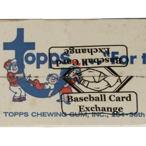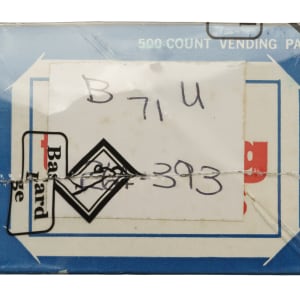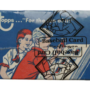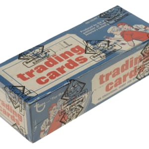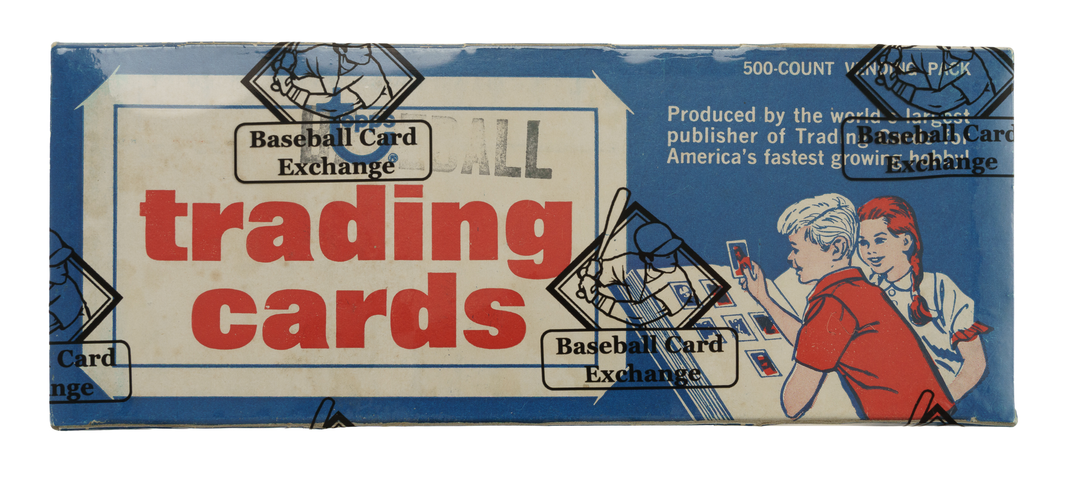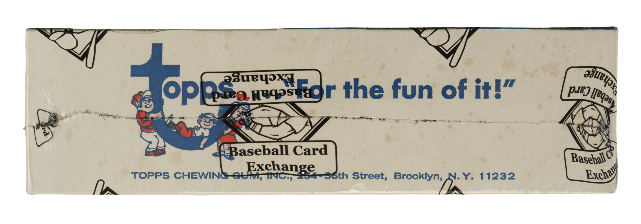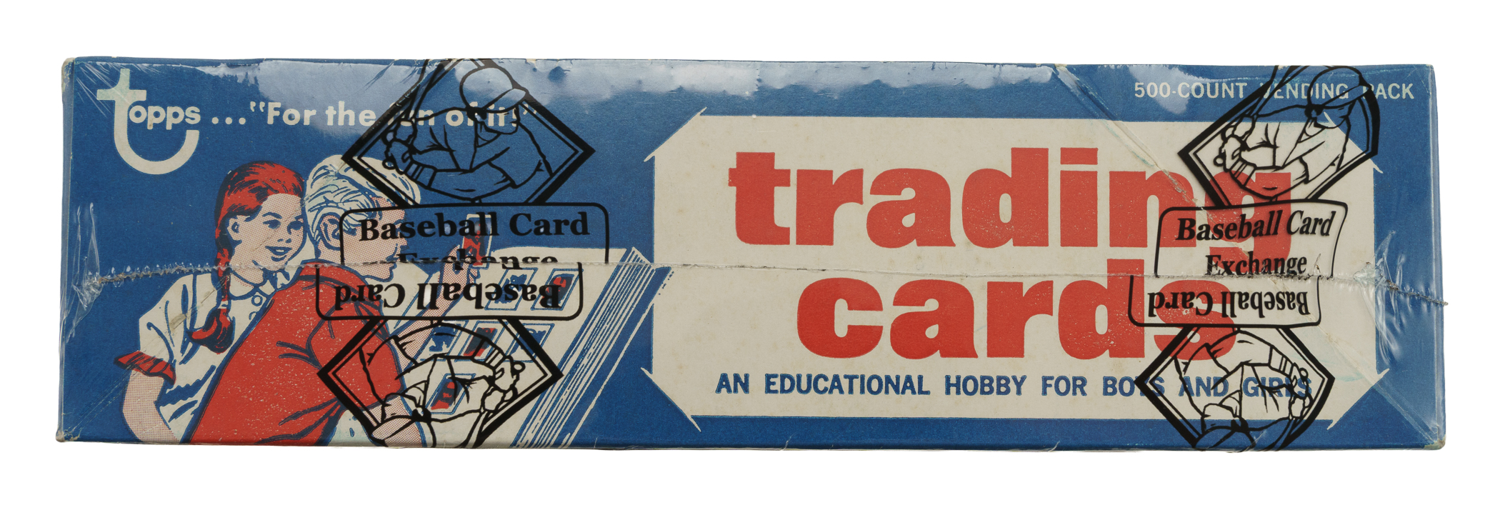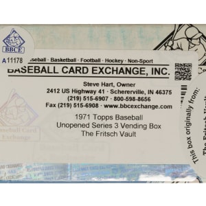 Complete original unopened vending box of 1971 Topps baseball containing approximately 500 cards, from the third series (#264-393), which includes Hall of Famers Joe Morgan, Fergie Jenkins, Brooks Robinson, Don Sutton, Rollie Fingers, and Ted Williams, along with the rookie cards of star players George Foster and Steve Garvey. Any unopened material from 1971 Topps is extremely rare, and in our experience, it becomes available less than any other 1970s set. The black flush-to-the-border design of the 1971 Topps set makes this issue particularly challenging to collect in extremely high grade. While it is impossible to provide guarantees with reference to grading of unopened material, it is possible that this box includes Mint or Gem Mint cards. This box originates directly from the estate of the legendary Larry Fritsch. It comes shrink-wrapped by Baseball Card Exchange (owned by Steve Hart, the foremost expert on unopened material) and bears the certified designation as having originated from the "Fritsch Vault." This is a very impressive unopened vending box with superb provenance. It would be a worthy addition to even the most advanced collection of 1971 Topps or unopened material.
