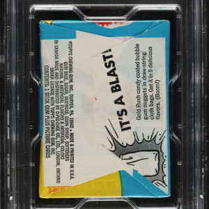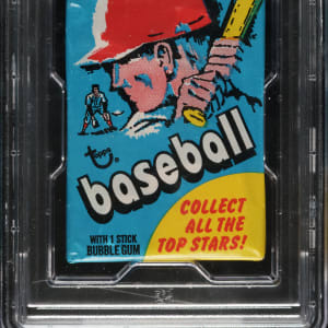 Graded NM 7 by PSA. Original unopened wax pack from the first series of the 1971 Topps baseball set. Featured in this series are Bert Blyleven (rookie card), Reggie Jackson, Willie McCovey, and Pete Rose.
