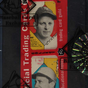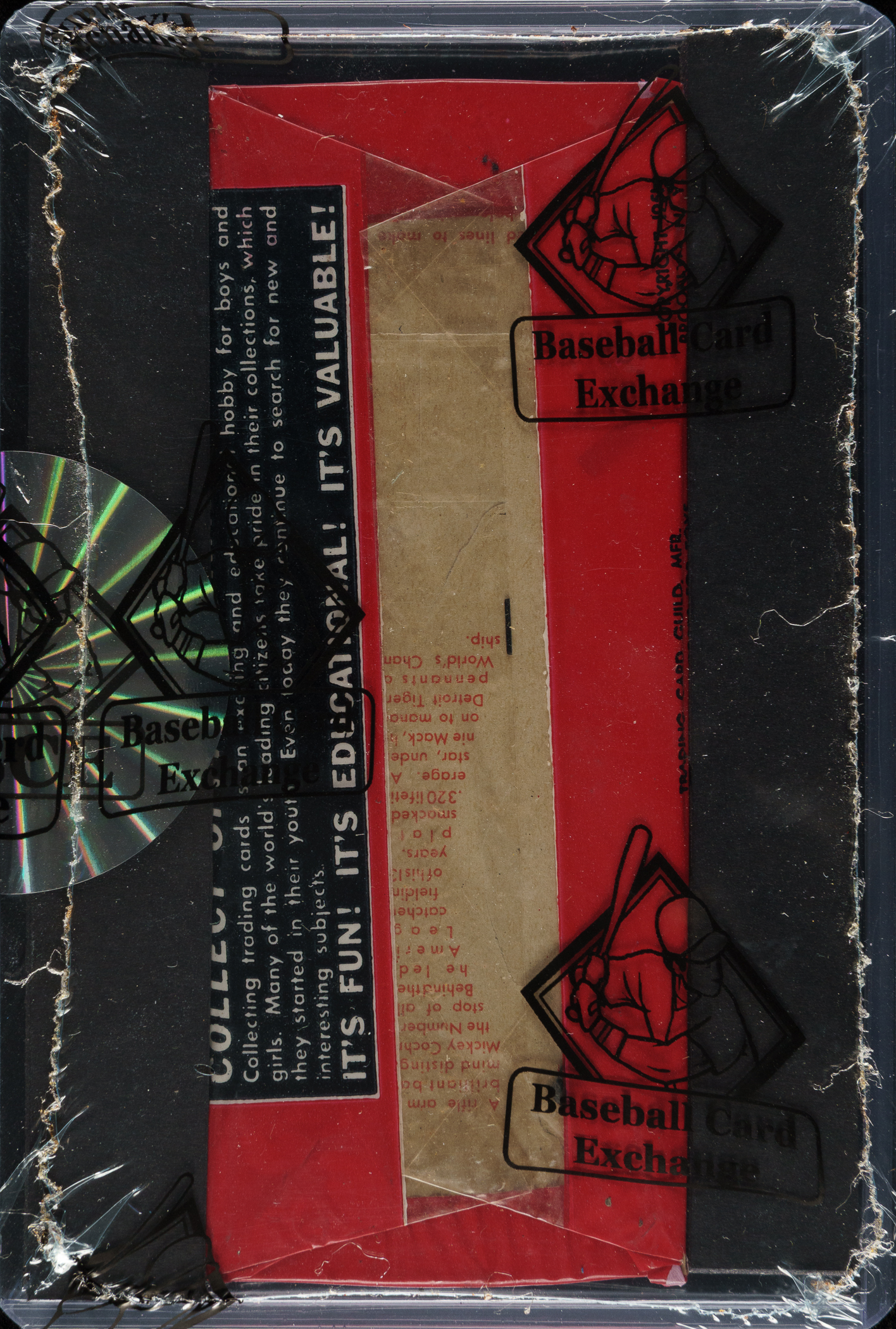 Presented is an extremely rare original unopened cello pack from the 1951 Topps Red Backs set featuring eight two-card panels, for a total of 16 cards. Card numbers 9 Roy Sievers and 41 Whitey Lockman are showing on top. Even more amazing, an example of Mickey Cochrane's 1951 Connie Mack's All Stars card is showing on the back. The 1951 Red Backs set includes the following eight Hall of Famers: Berra, Rizzuto, Wynn, Kiner, Feller, Spahn, Snider, and Irvin. This is only the second example of this 1951 Topps cello pack that we have ever offered! It is an incredibly rare, substantial, and historically significant unopened cello pack in extraordinary condition, looking as it did when it appeared on a candy-store rack in 1951, direct from the earliest days of Topps and the "golden era" of baseball cards. The pack comes shrink-wrapped by Baseball Card Exchange (owned by Steve Hart, the foremost expert on unopened material).