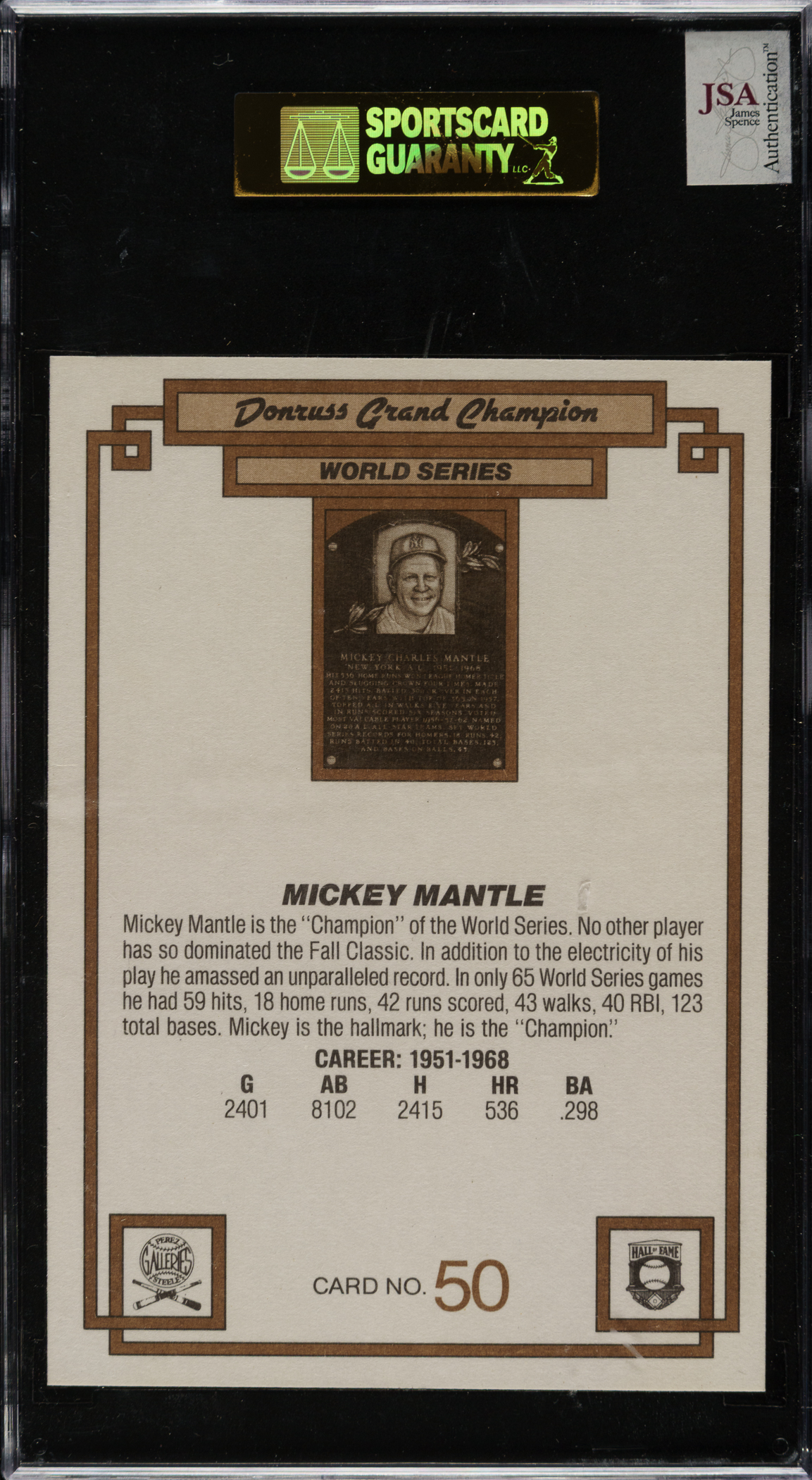SGC/JSA has encapsulated the card, grading the signature Authentic. New York Yankees Hall of Famer Mickey Mantle.