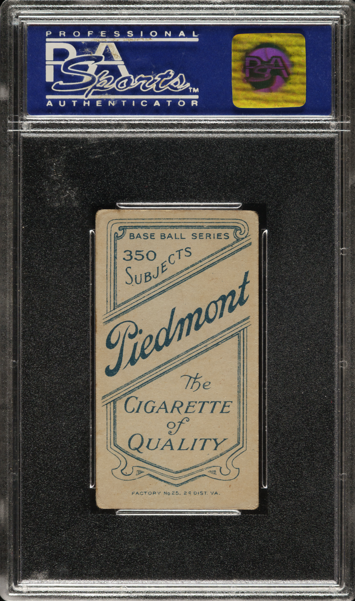Graded VG-EX 4 by PSA. Very attractive example of the rare T206 Kid Elberfeld (Washington, portrait). This card has always been recognized as one of the key rarities of the T206 White Borders tobacco-card series. The offered card displays a bright red background, excellent registration, and honest corner wear. Boldly printed Piedmont 350/25 reverse.