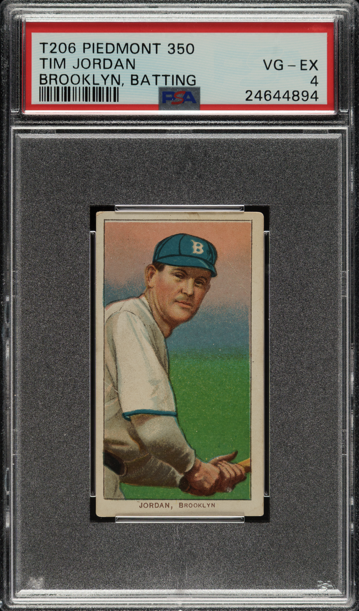 Lot # 740: 1909-1911 T206 White Border Tim Jordan Batting PSA VG-EX 4