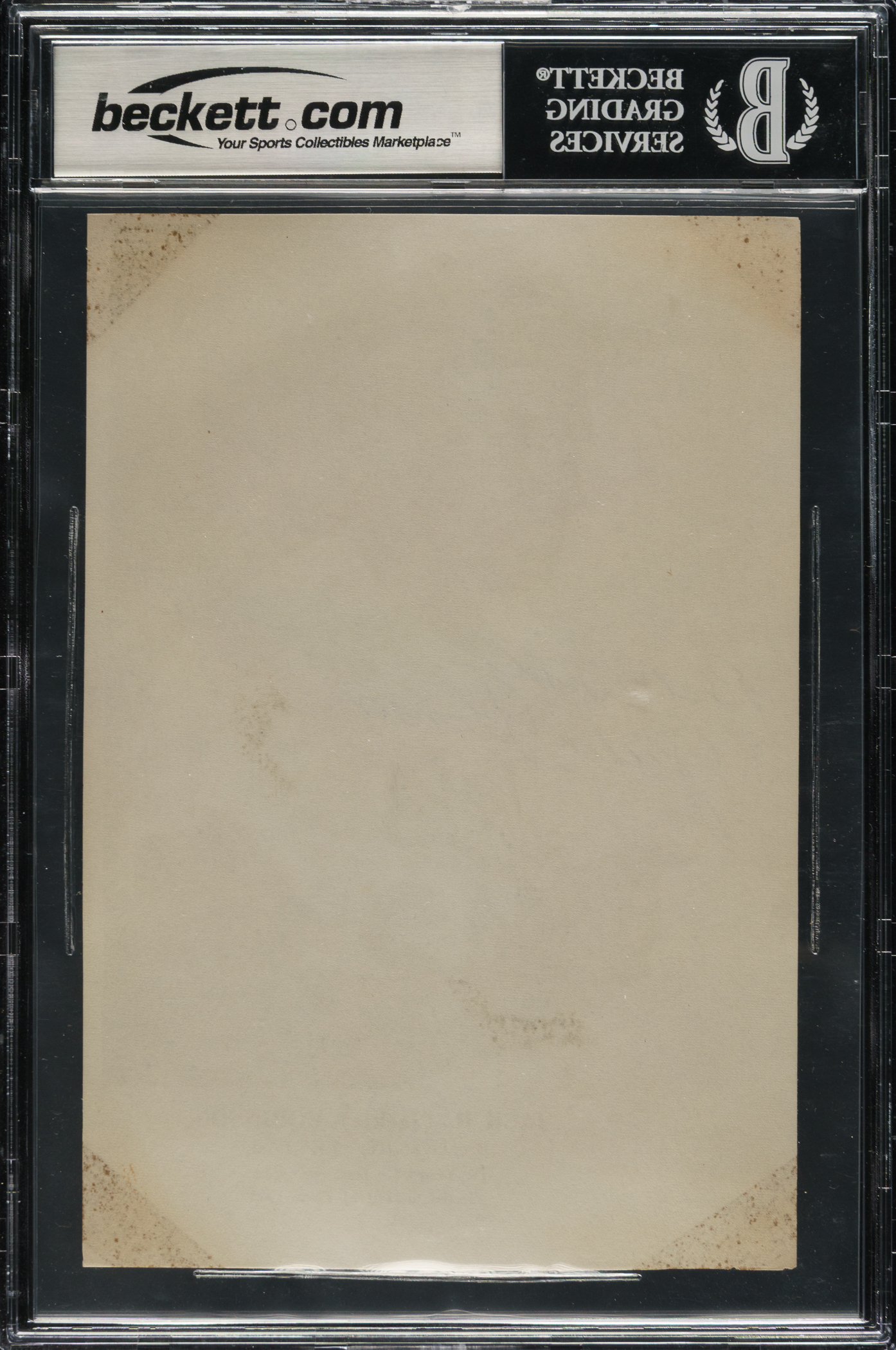 Signed example of Jackie Robinson's 1963 Hall of Fame Picture Pack card. Robinson has boldly inscribed the card "Best Wishes/Jackie Robinson" in blue ink. Beckett has encapsulated the card and graded the signature GEM MINT 10. Fair condition overall due to tape stains along all four corners.