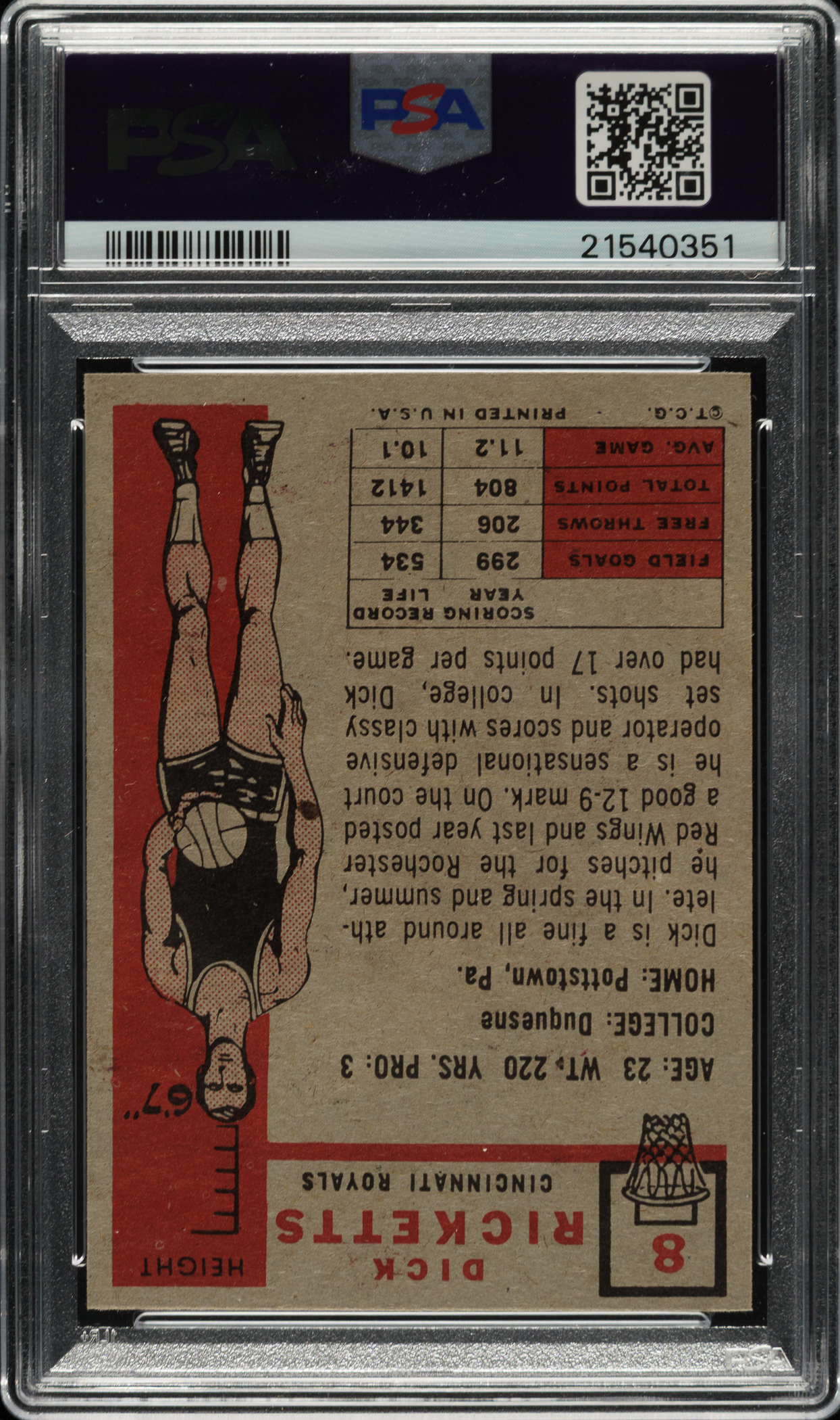 Graded NM-MT 8 by PSA. Cincinnati Royals. Only two examples have been graded higher by PSA.