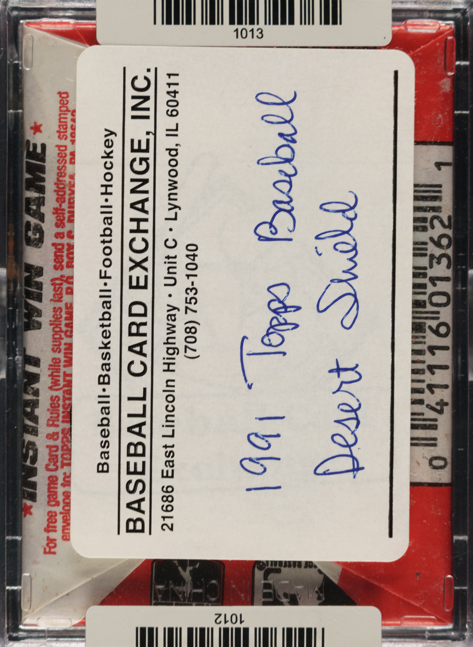 Extremely rare unopened wax pack of 1991 Topps Desert Shield containing fifteen cards. Topps produced the 1991 Desert Shield set at the same time it produced its regular set in 1991 but with the special purpose of distributing the cards to members of the military stationed in the Middle East as part of Operation Desert Shield. The cards, differentiated from regular-issue cards by a gold foil stamp on the card front, caused quite a frenzy upon their release (reportedly limited to 6,500 sets) as cards were scattered across the world, but many did wind up in the hands of collectors. Their low print run compared to other sets of this era and their unique historical significance has made the set very popular with collectors to this day. The set is noted for the inclusion of Chipper Jones' rookie card, along with desirable examples of many Hall of Famers and stars, including Cal Ripken, Nolan Ryan, and Ken Griffey Jr. Crisp, clean unopened wax pack displaying a beautiful full-color wrapper and a tight seal. This pack comes shrink-wrapped by Baseball Card Exchange (owned by Steve Hart, the foremost expert on unopened material). This is an incredible and extremely rare unopened wax pack from this highly sought-after and historically significant modern set.
