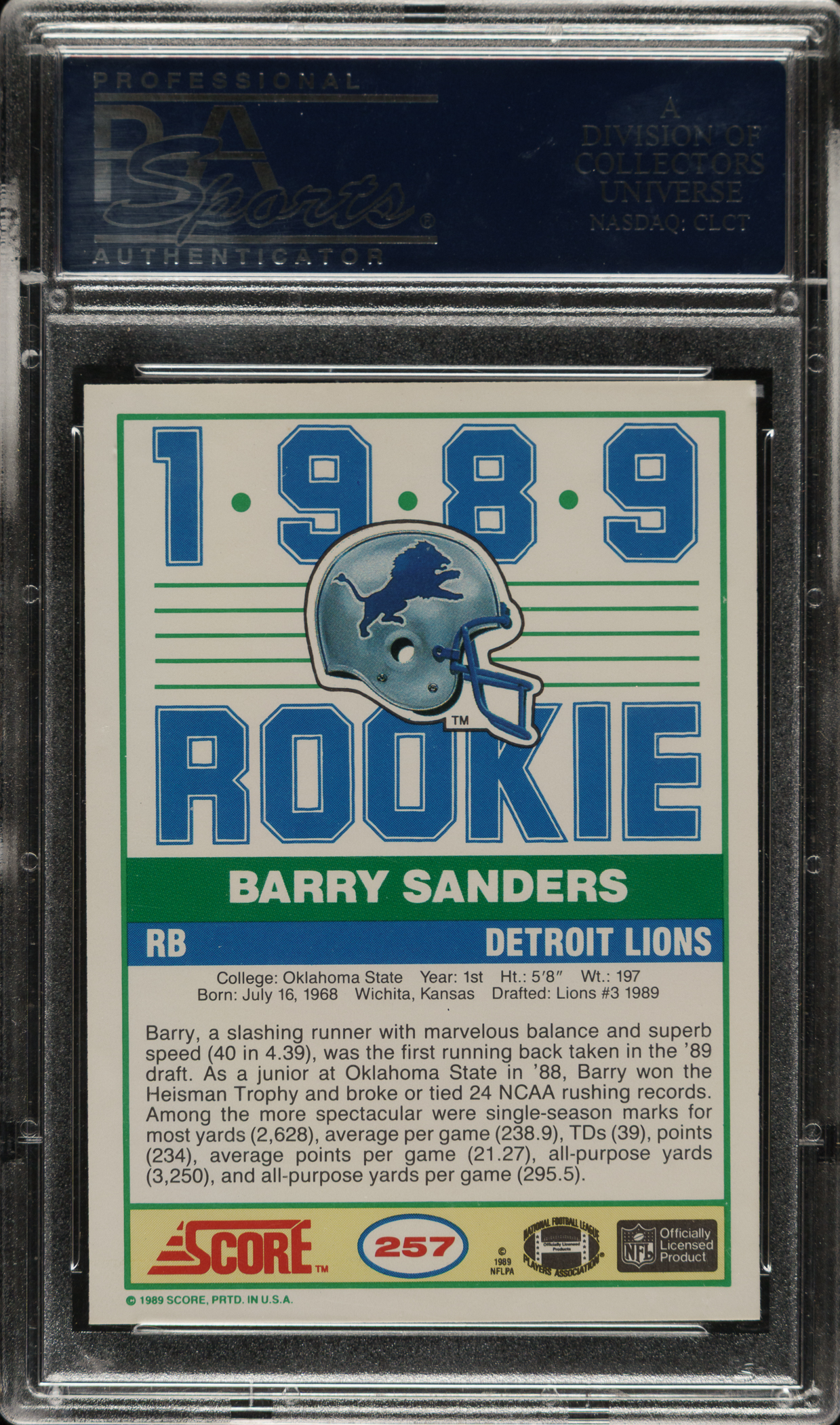 Lot # 3983: 1989 Score Football #257 Barry Sanders Rookie PSA MINT 9