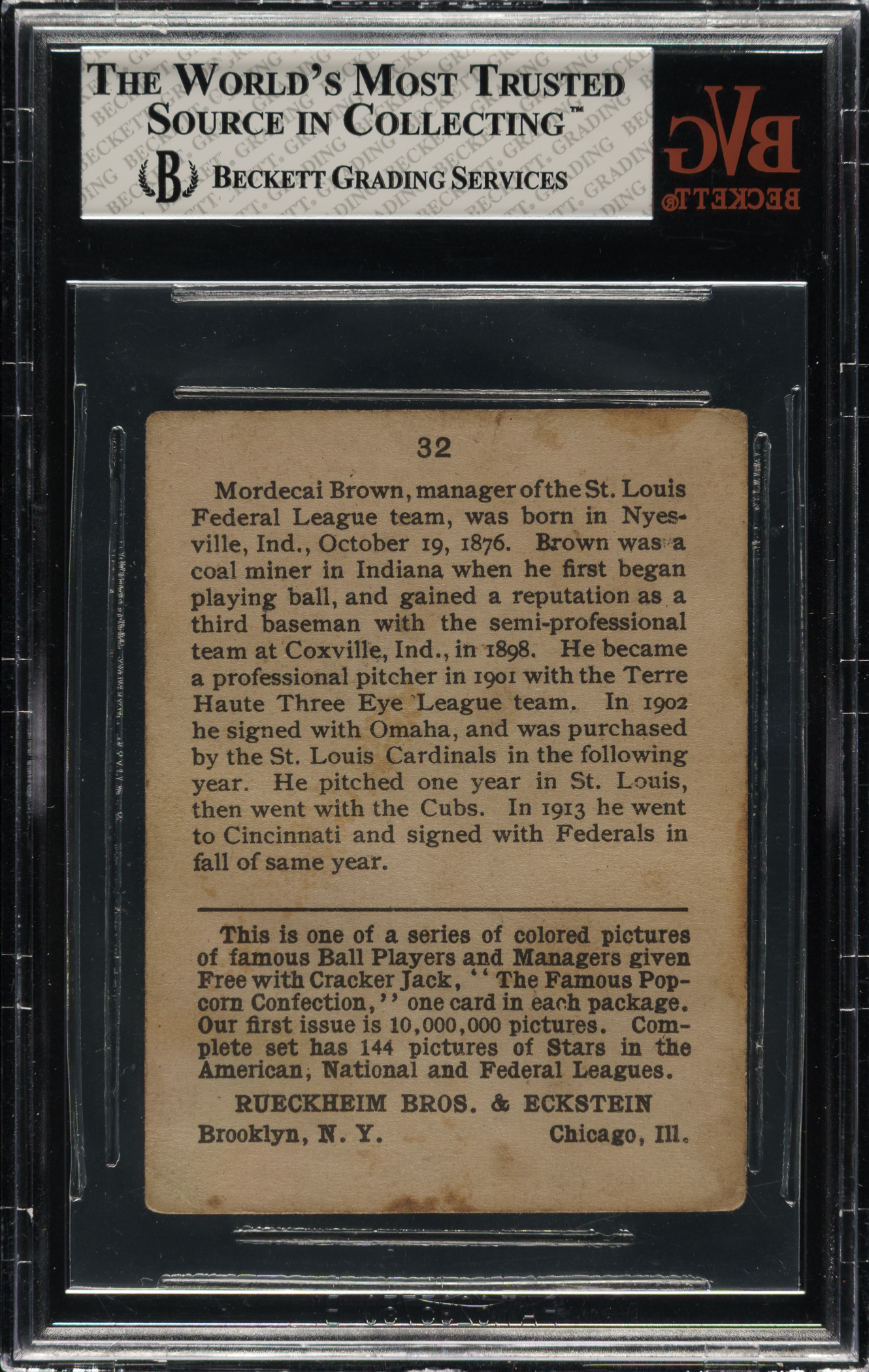 Graded VG+ 3.5 by BVG. St. Louis Terriers Hall of Famer Mordecai Brown.